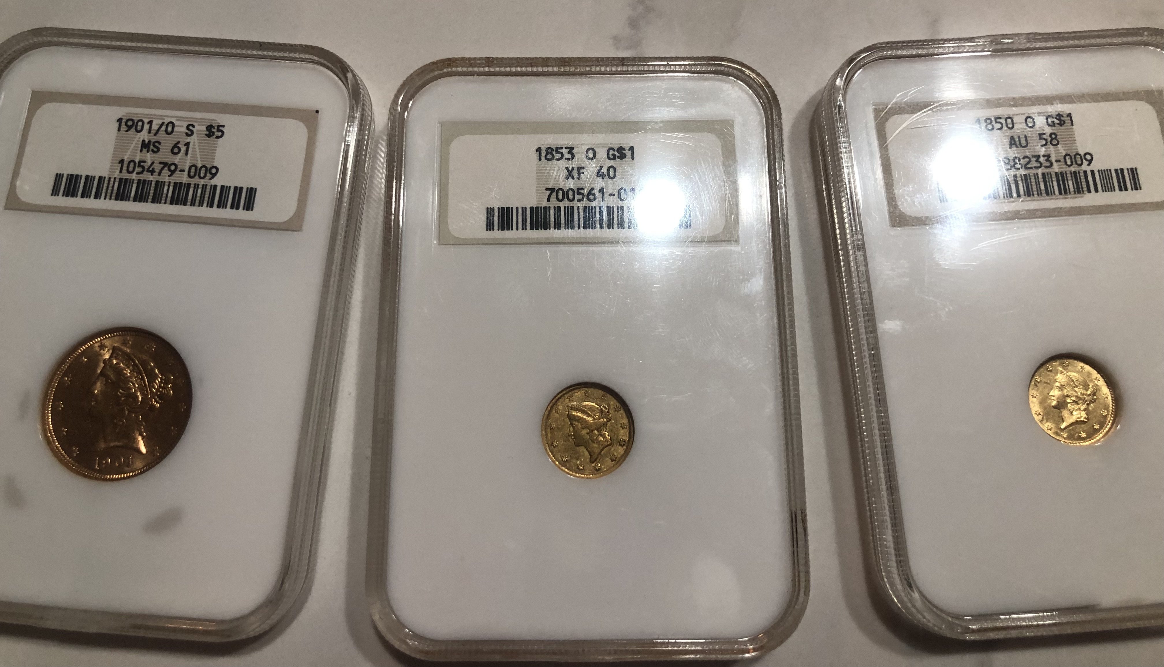 Notes: As very early NGC slabs, gold backs should have green labels. Collector Gary Zimmerman however, considered the ambiguity of label colors and chose to check brown label dime samples as well. His diligence paid off when he saw the pictured holder in an otherwise unremarkable eBay auction in March 2016. No-one else noticed the special type and it closed for just $13.56.