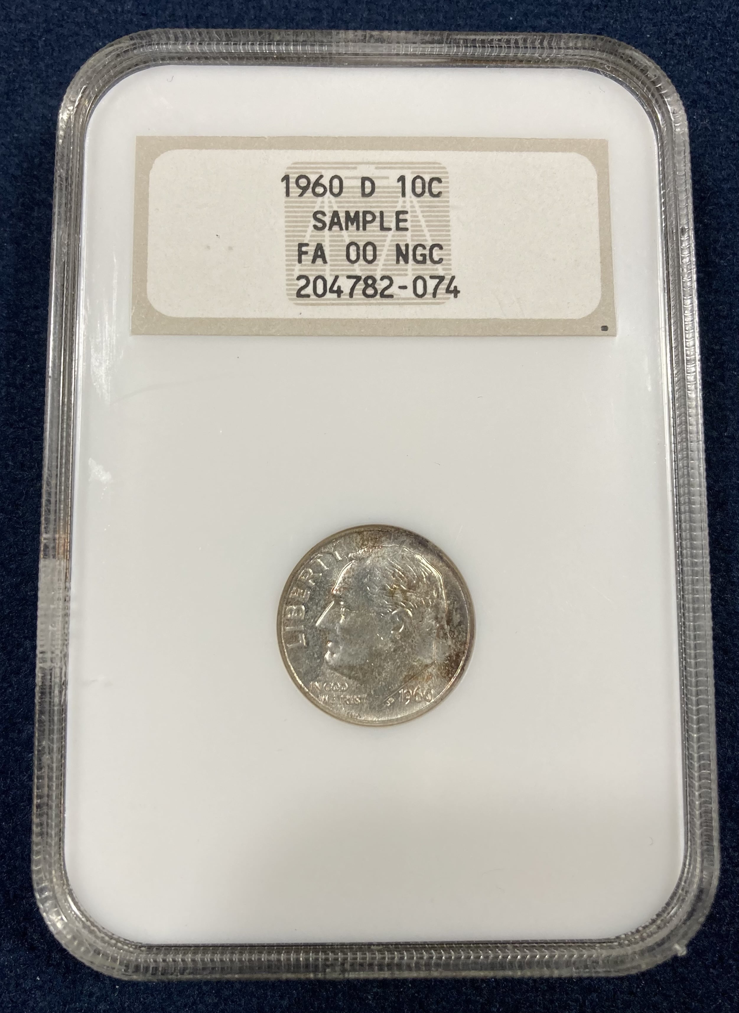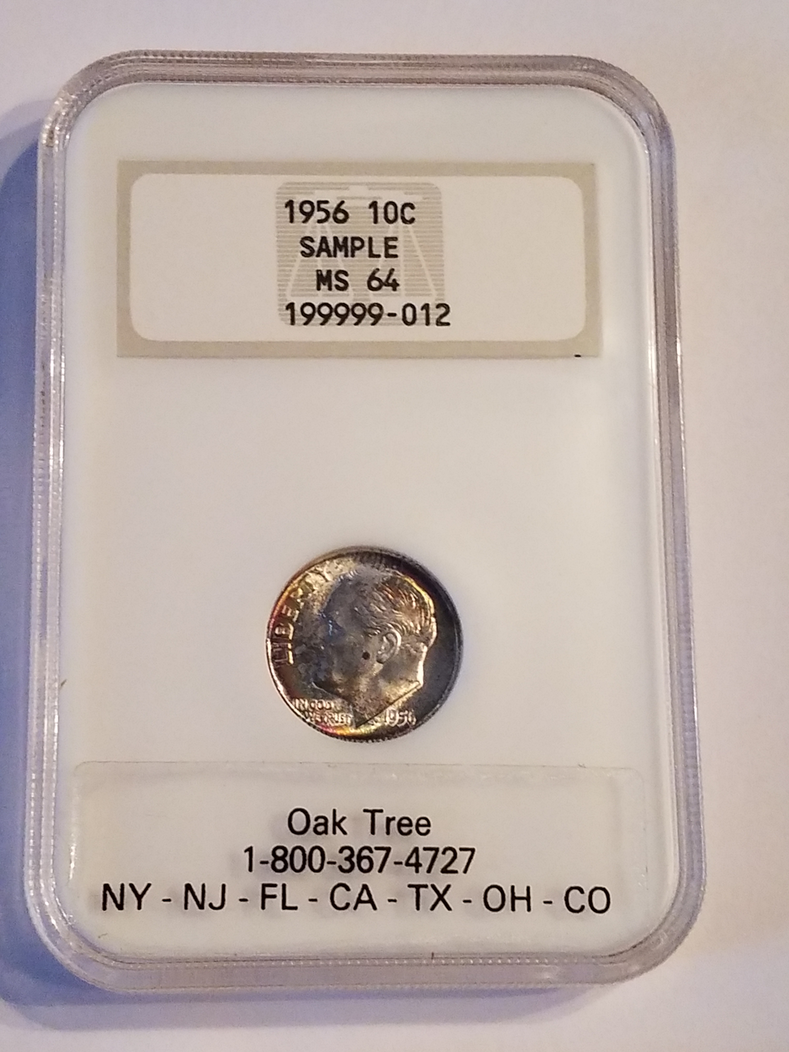 Regardless, what we are seeing with the sample slab provided by the OP, and with the sample slab written about by @BStrauss3, is the wrong outer shell used when the sample slab was produced. These two sample slabs have cert numbers 204782-XXX so they were likely from the same batch of samples slabs produced at the same time. I have done a little bit of research into the NGC Roosevelt dime sample slabs and have saved images for nearly a score of the 204782-XXX sample slabs and they all, except for the coin in the OP and the one referenced by @BStrauss3, have the NGC hologram reverse on the holder. Some have green ink and some have brown ink, but they are all hologram reverse slabs.