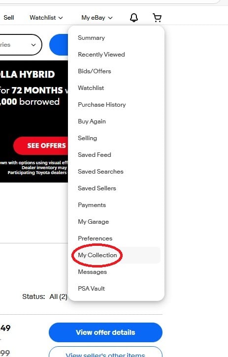 For those unaware or confused with Ebay's My Collection setup for tracking your PC including Best offer prices w/o jumping through hoops.