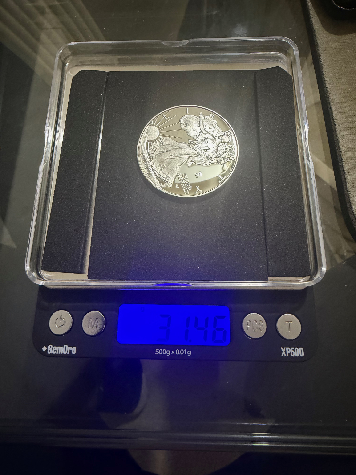i went to a local pawn shop and they where kind enough to test it for me and the XRF RESULTS ARE......98% silver remains= CADMIUM. may not be 96% but still not .999 .i wonder if that is enough to account for the coin to be at 31.46g .