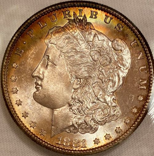 I'll start with 1881 because I already have 3 examples I already own to choose from. The two toned pieces are graded 63/65. I prefer both of those to the blast white piece in the capitol holder. Which toned piece would you choose if putting together a date set? Not really worried about matching pieces other than luster. I would like pieces with full luster.