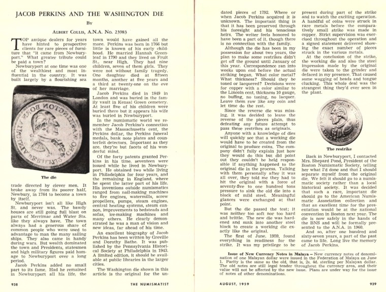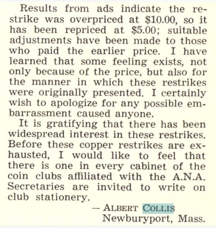 A letter to the editor from Collin in the November, 1959 Numismatist. Note that it gives the silver mintage as 27, not 22.