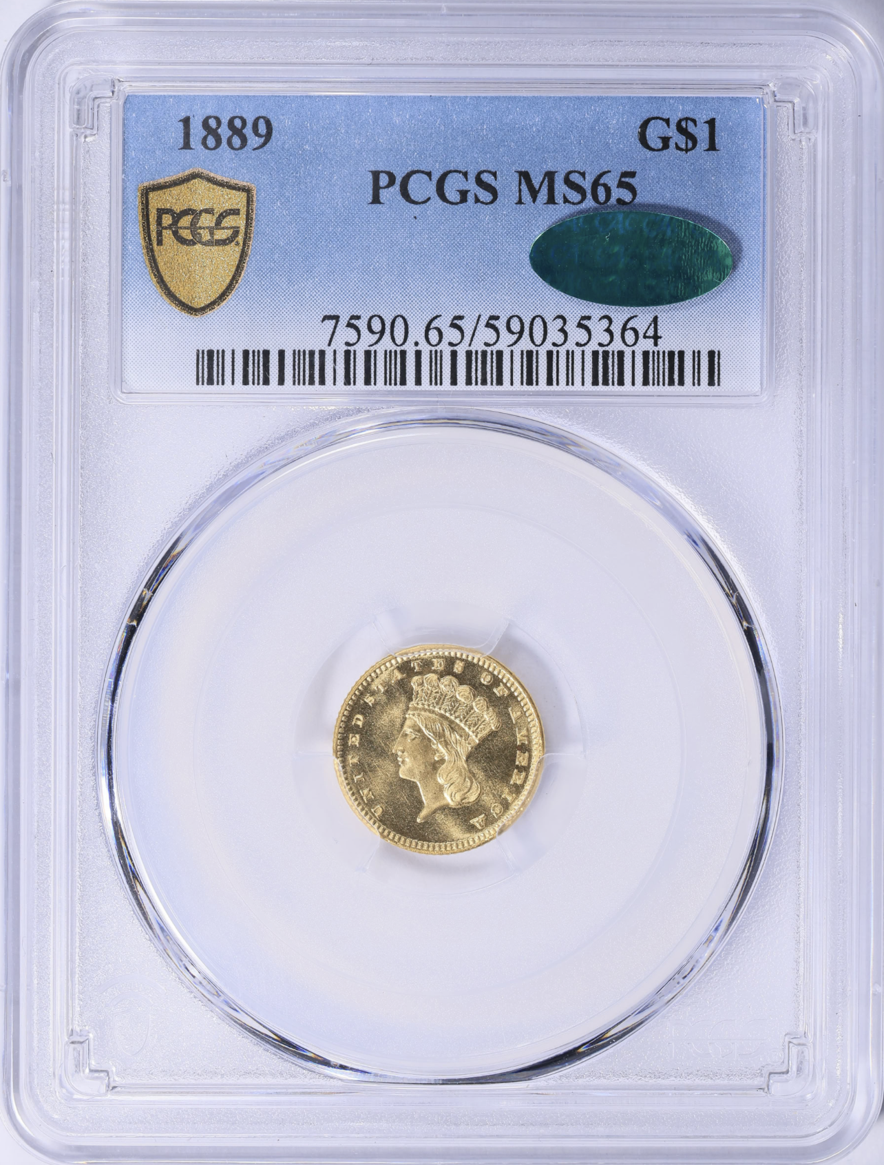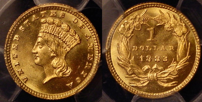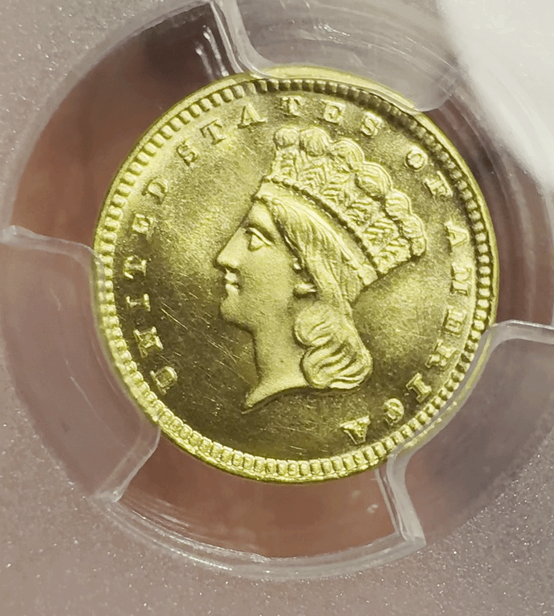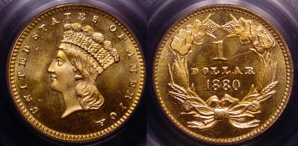 If you are stuck on having to buy CAC approved coins, that's what you will have to do. The 1880, 1881, 1882 and 1889 gold dollars do not have CAC stickers. Frankly I don't care. I know that they are good coins for the grade. I paid a premium for the 1880 because it is very nice for an MS-65 graded piece. The line you see on the reverse is on the holder, which is an example of nice Old Green Label holder piece.