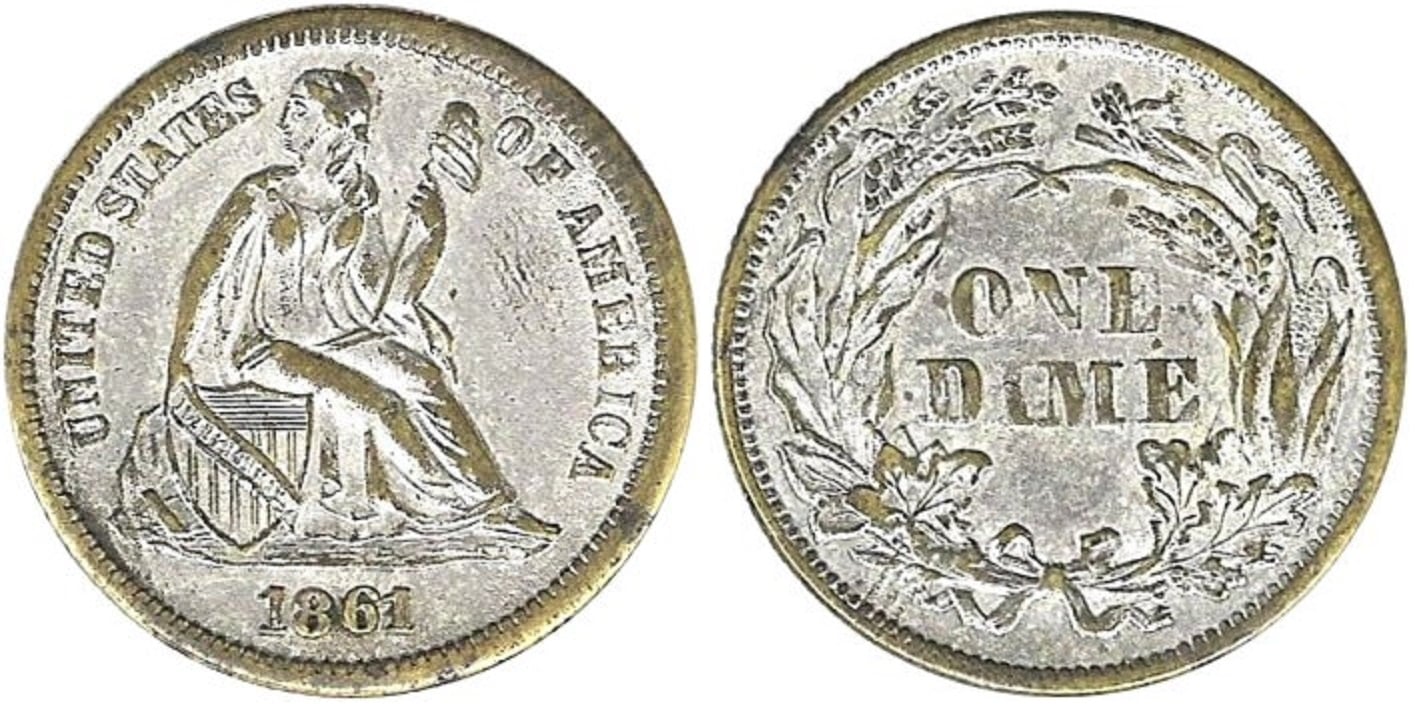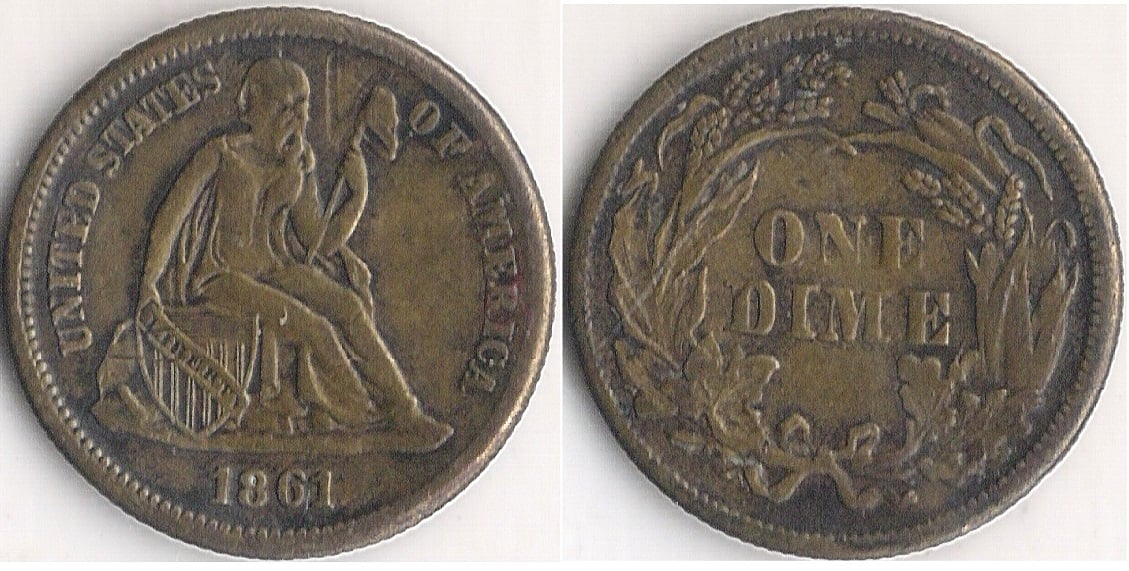 WTB !!! 1861 CONTEMPORARY CFT DIME IN GERMAN SILVER