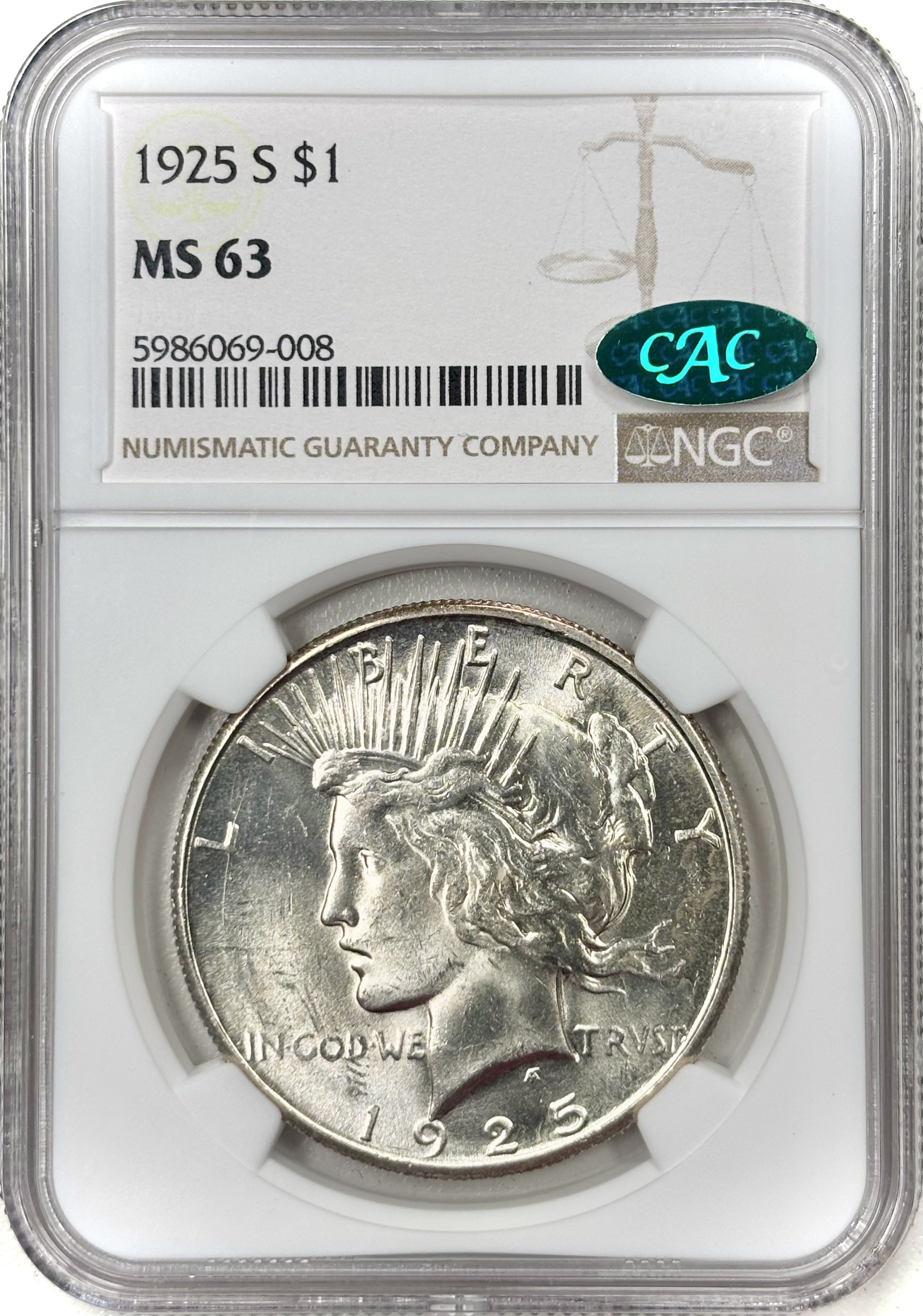 1925-S MS63 NGC CAC Green Peace Dollar: SOLD with USPS shipping included. Listed here first for 3 days from the original post date.