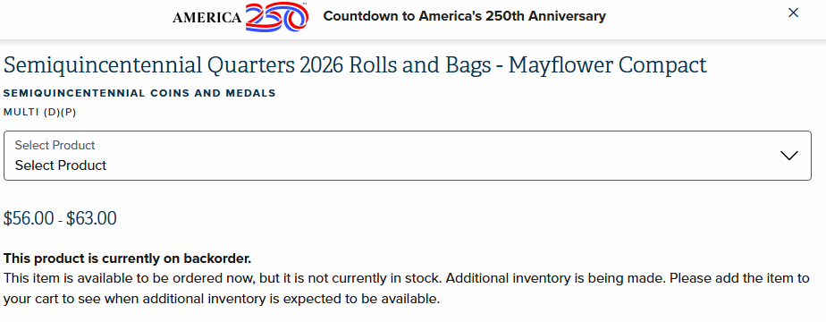 I received an email from USMint this morning telling me the quarter bags and roll would be available at 12:00 noon today ET. When I went to check the pricing it says Backordered. If you can't order till noon today how can it be backordered. Don't get me wrong, I have never ordered from Mint with a time opening , only off their website. A little education please.