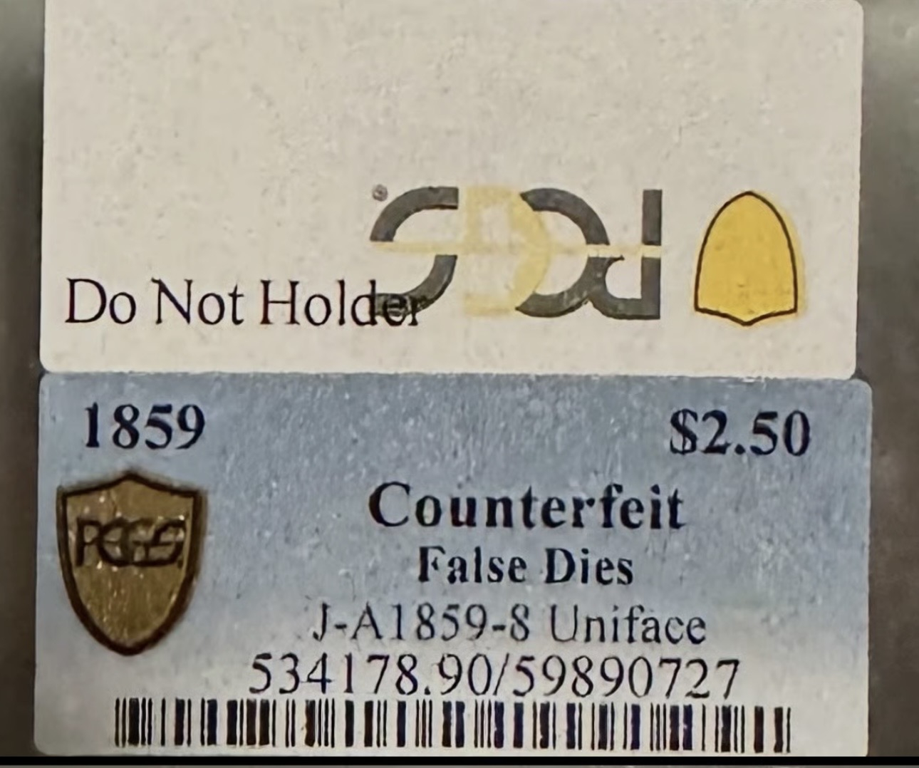I always wonder how on "one-offs" they can be determined false/counterfeit when it seems the possibilities for a genuine MINT PRODUCED die are nearly endless. How do we know that the die was not some creation of a mint employee or engraver that potentially could be a trial or experiment for virtually any purpose that was not employed immediately; rather, what if the die was left on a back shelf somewhere and then later hauled out and used by somebody within or without the mint to strike this piece up.