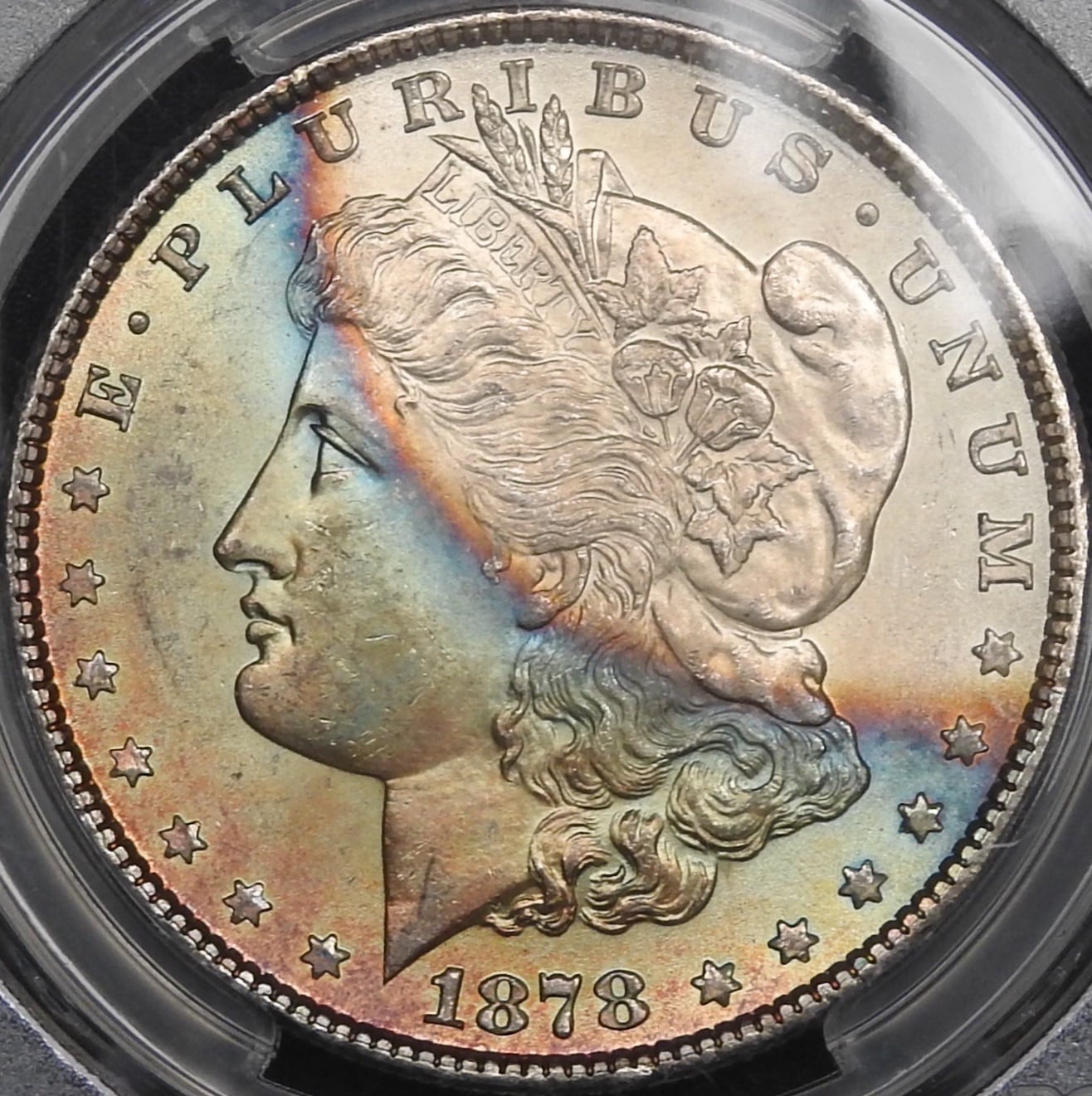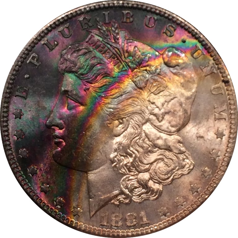 It is a Morgan and it has vibrant, uncommon toning (which in this case may or may not appeal to an individual collector). Significant deviation range for price is therefore chasm-like.