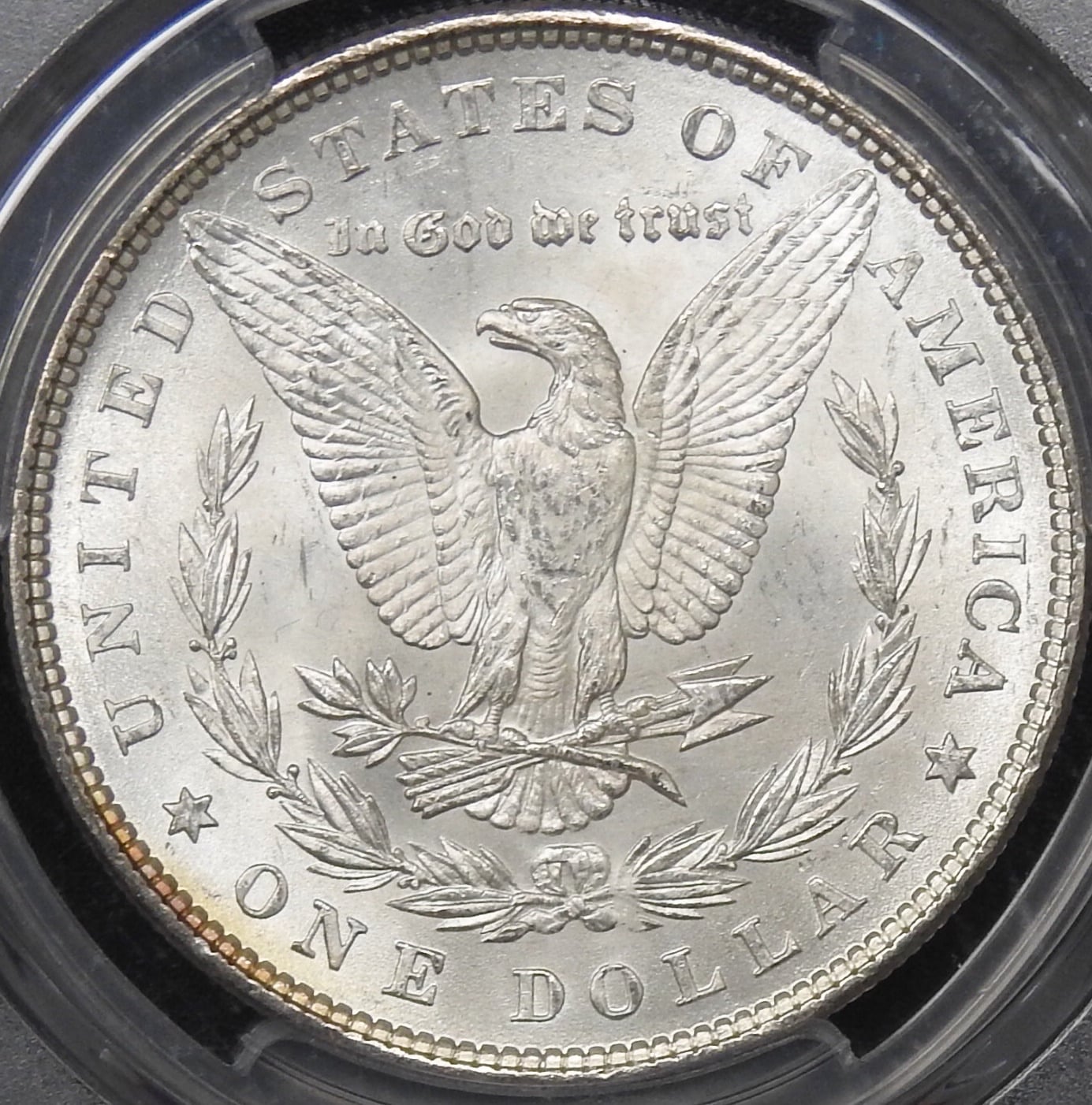 (This Morgan presents well. Great holder, in pristine condition. Stickered. Gem surfaces.)