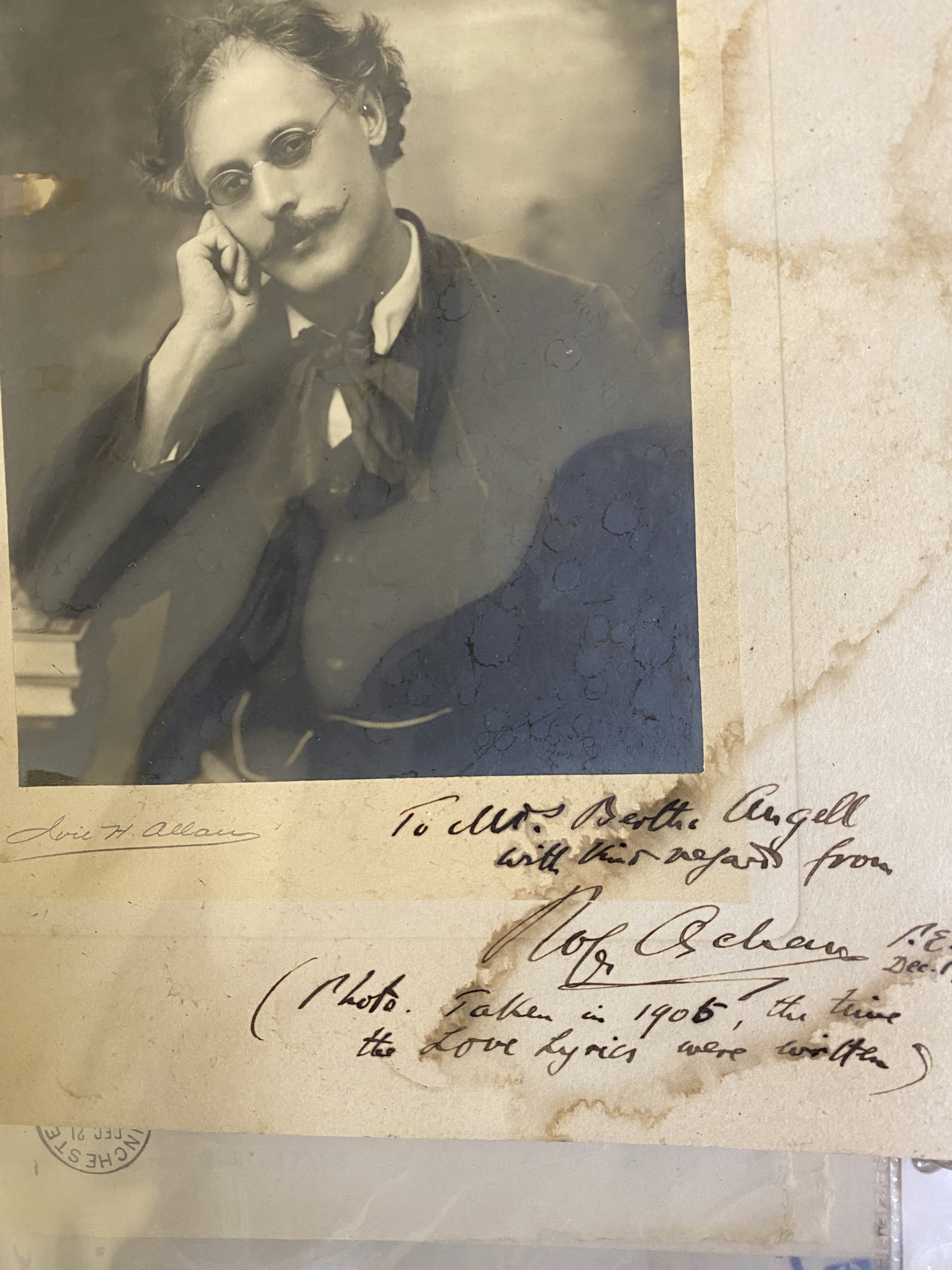 The photograph is inscribed to Miss Bertha Angell and is dated December 1906.