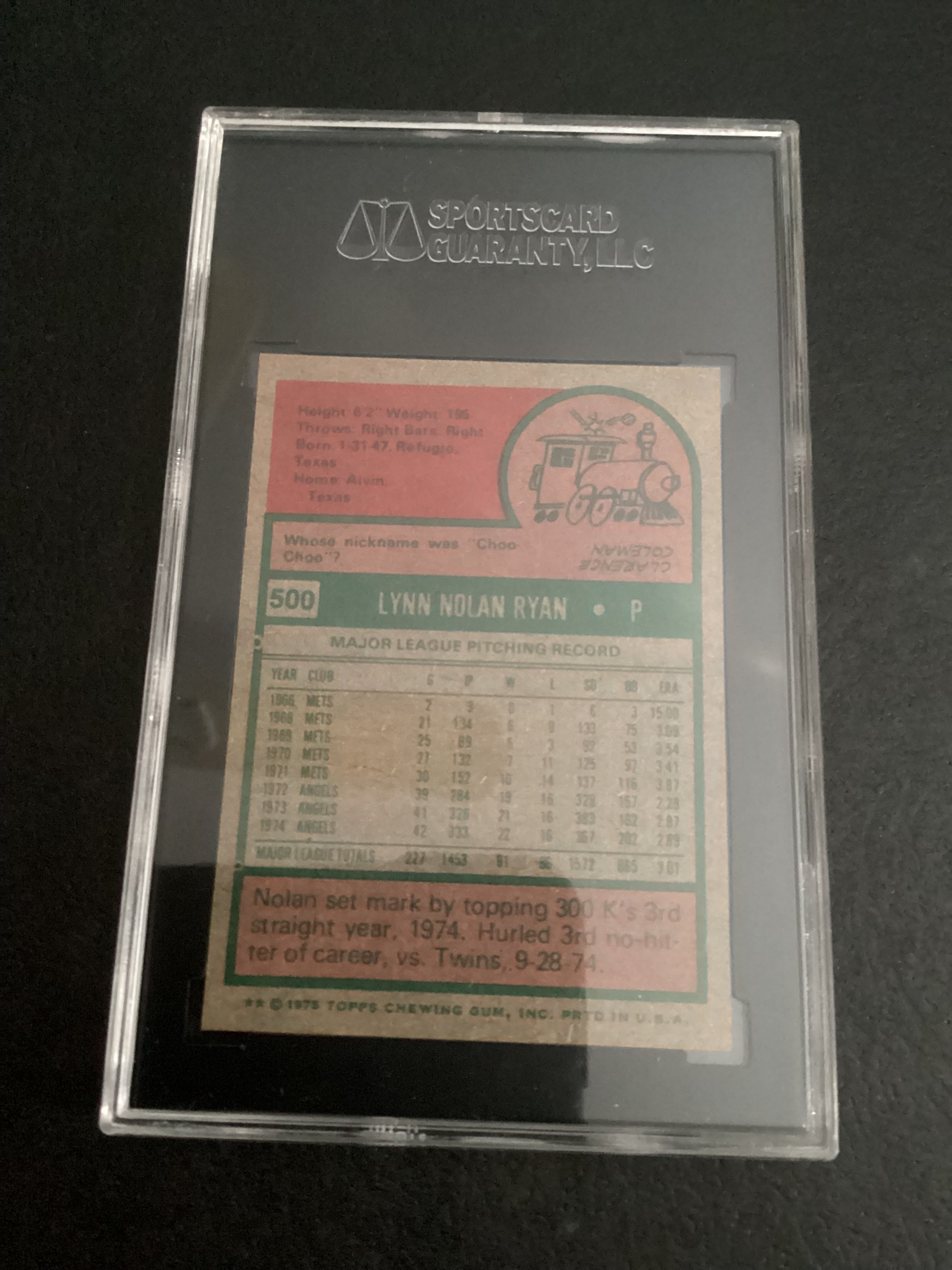 1975 TOPPS NOLAN RYAN # 500 SGC--96 MINT