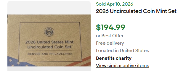 Call it gouging if one collects the mint-packaged sets, or wants the 2026 cent. EBay sellers, at this moment, offer pennyless sets of 2026 (with one quarter) for ≈ $35.00 (w/plastic case)