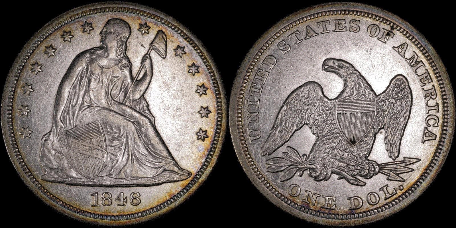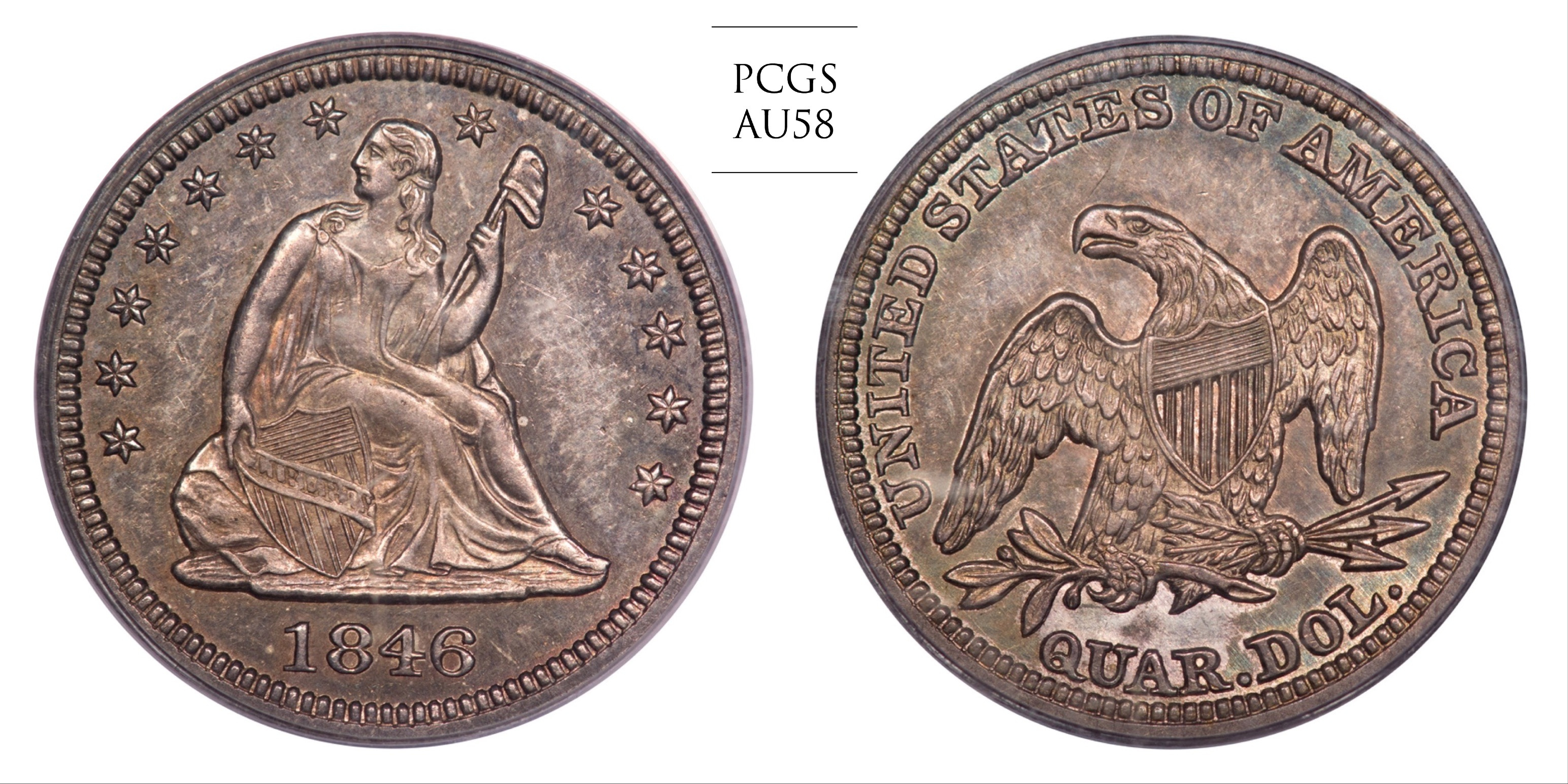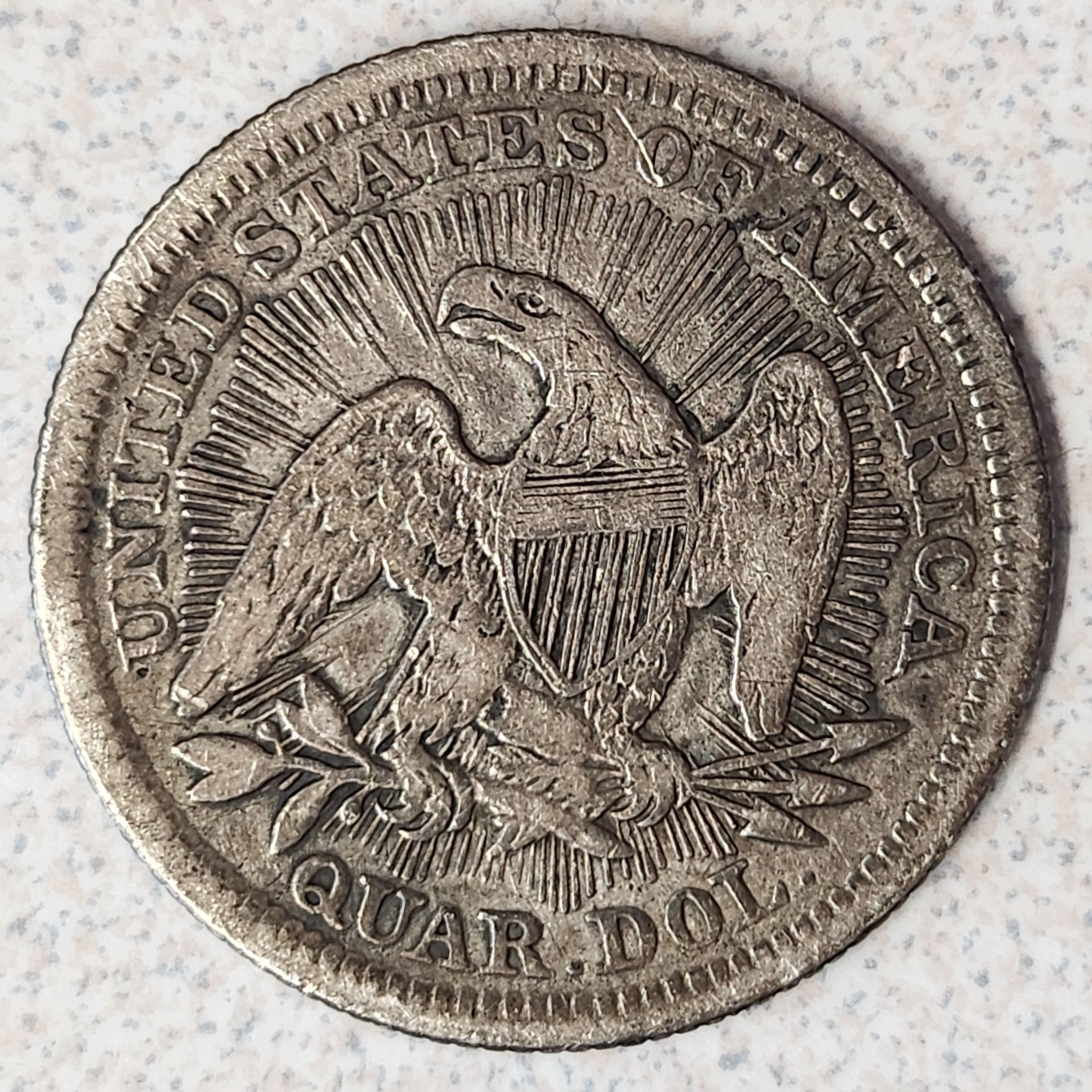 Here is a Seated quarter. You could even argue that my coin is not of the precisely same type, since it’s of a different subtype than the 1846 quarter above. But Seated quarter is close enough.