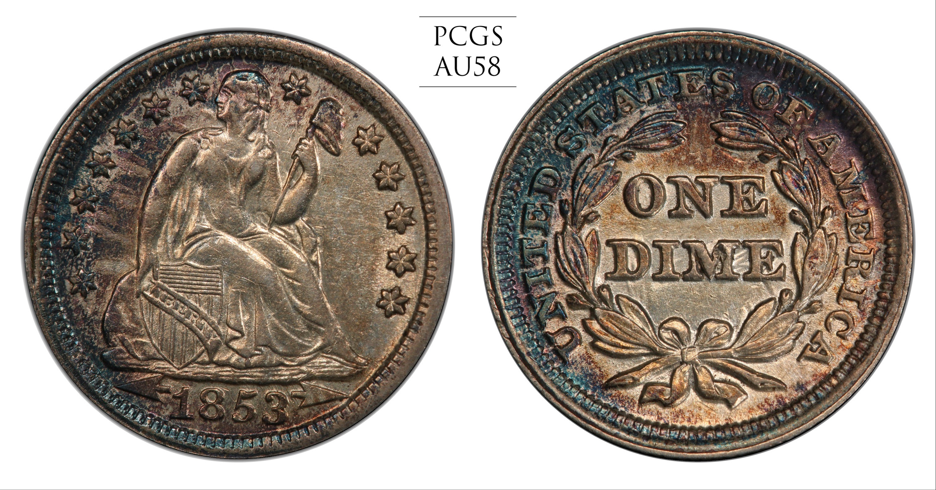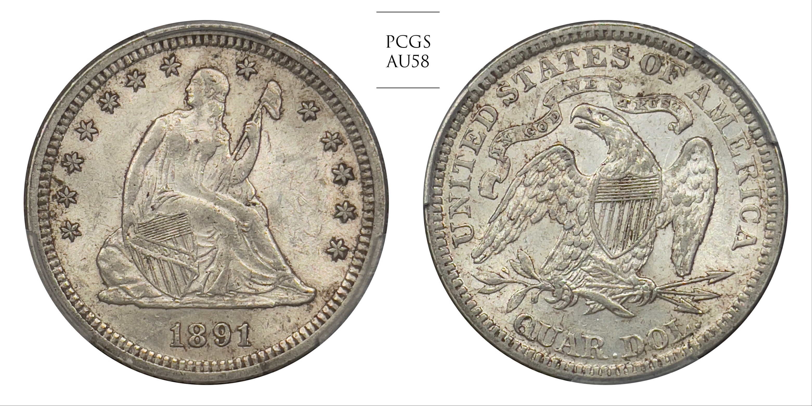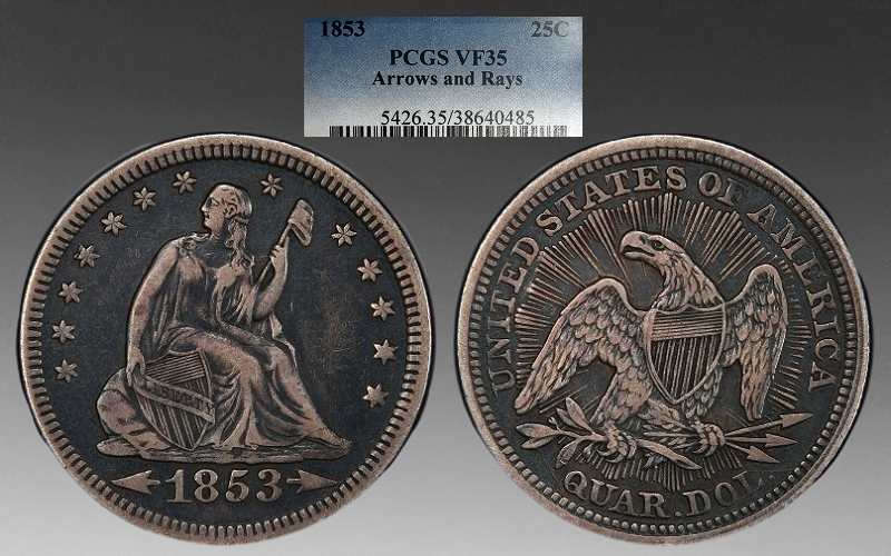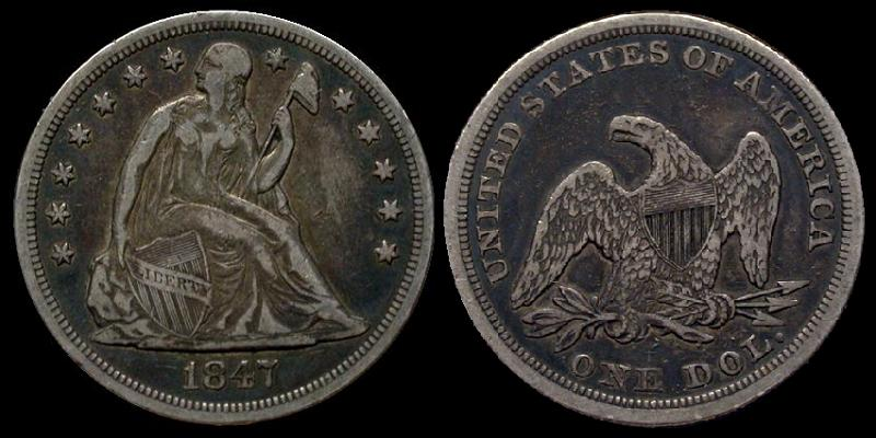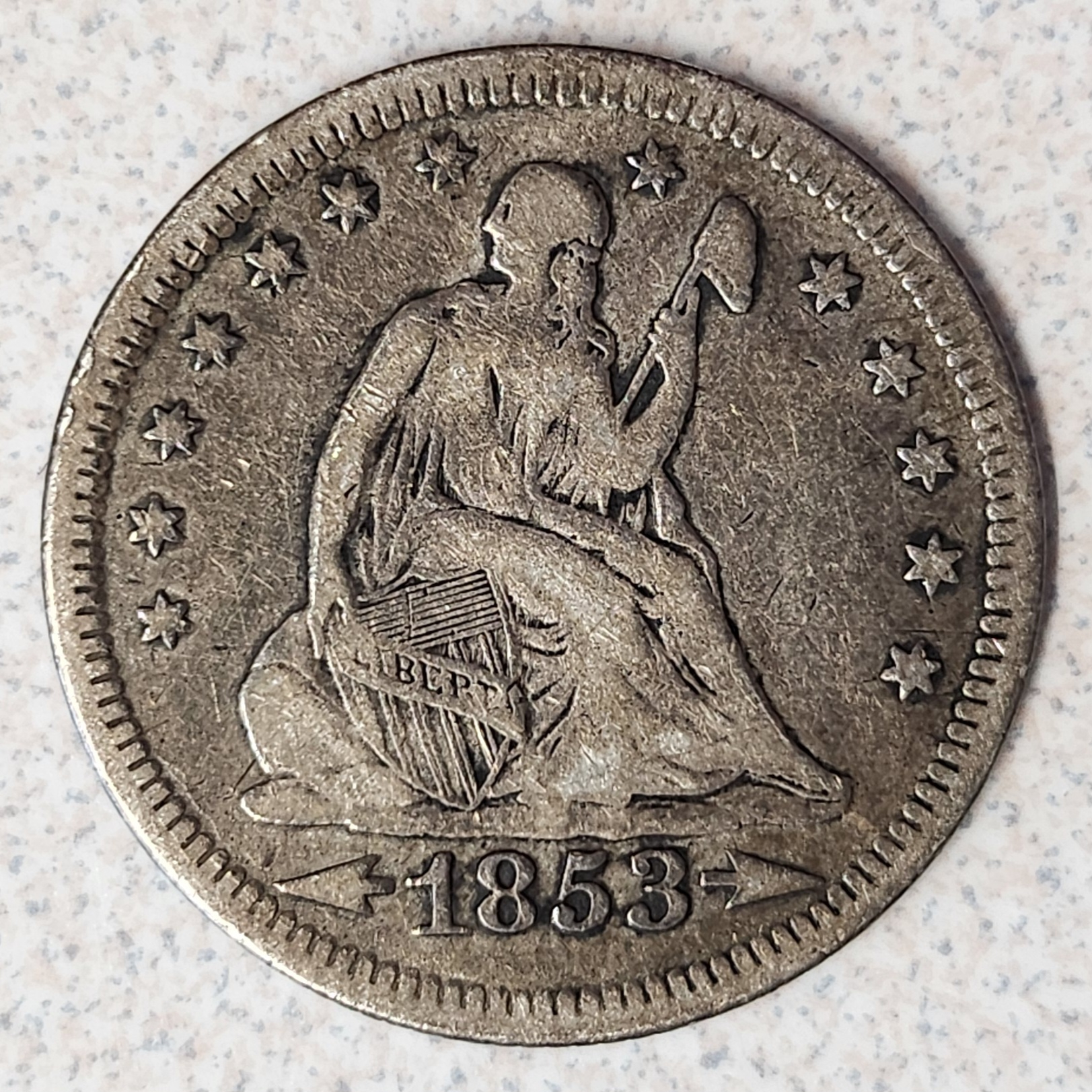Here is a Seated quarter. You could even argue that my coin is not of the precisely same type, since it’s of a different subtype than the 1846 quarter above. But Seated quarter is close enough.
