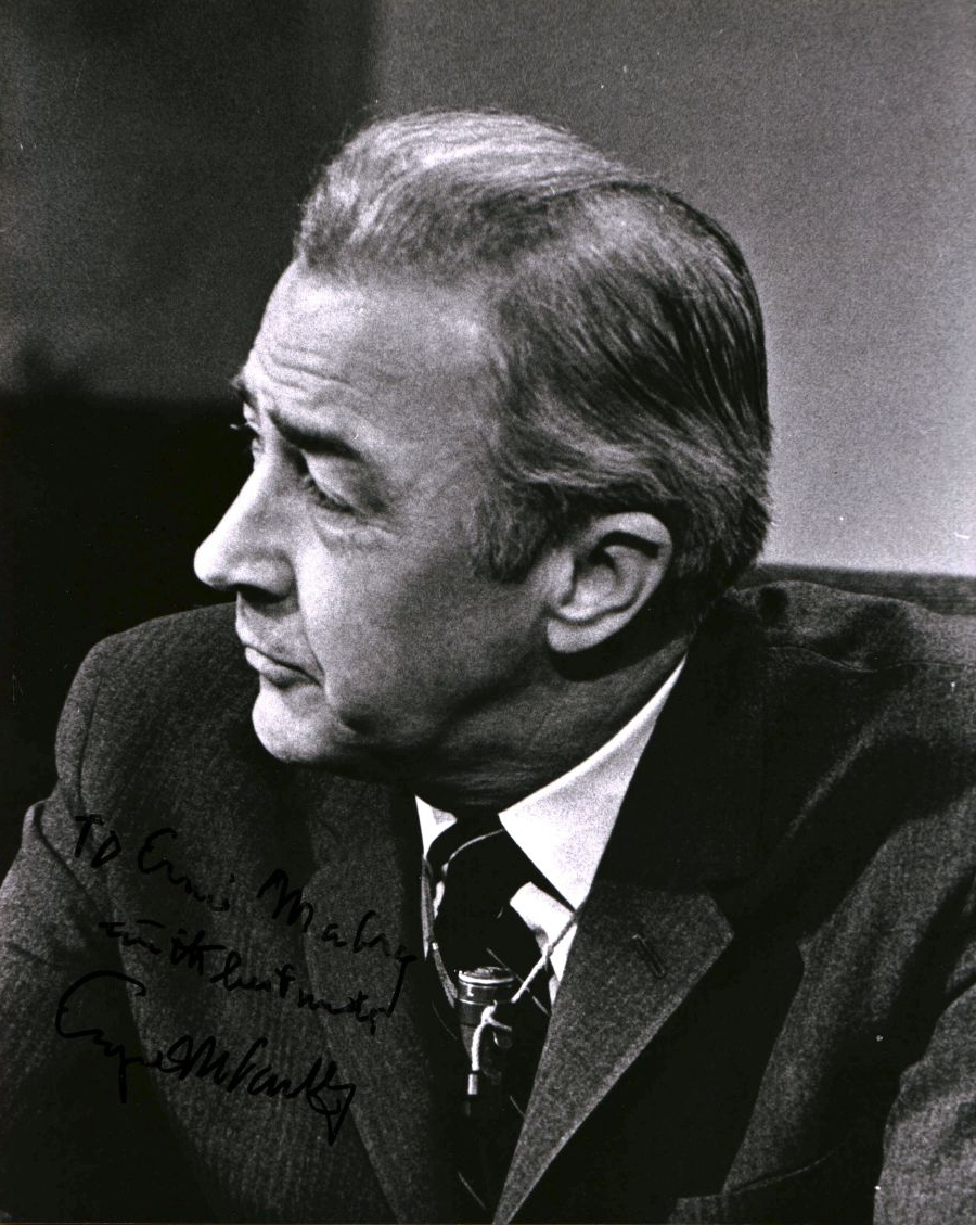 On the anniversary of his birthday, an autographed 8" x 10" photo of former Senator Eugene McCarthy that I obtained through the mail in 1997.