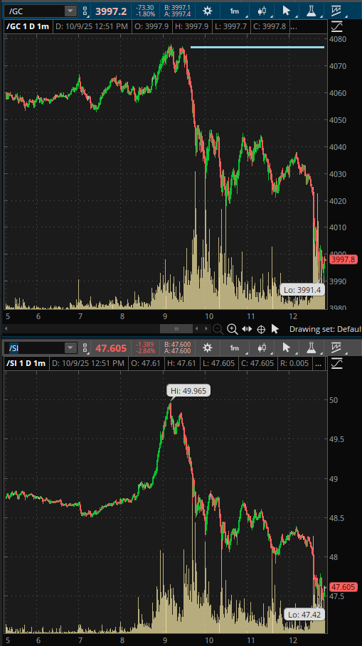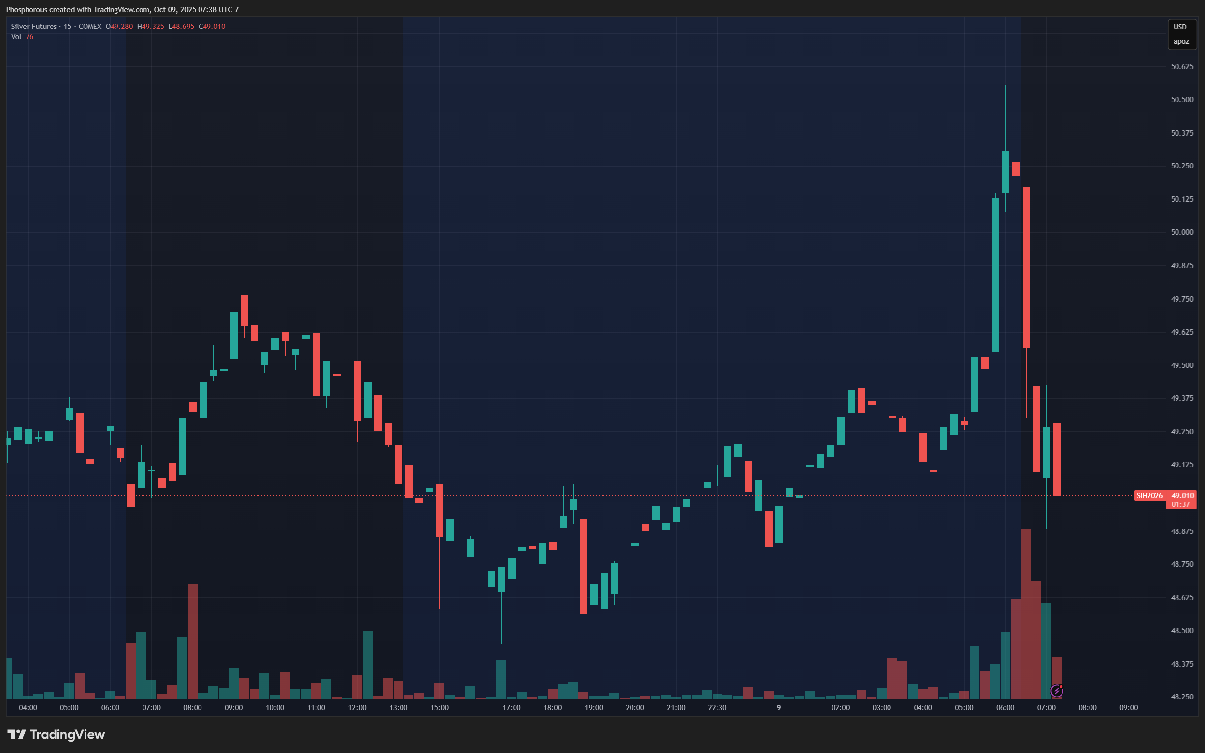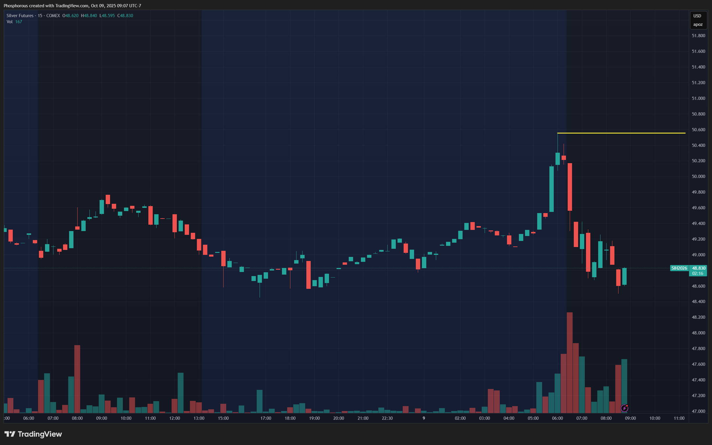 Silver Futures are still headed down, while the spot price is still holding above $50. Someone in the paper market sure wants the price to tank, but it isn't tanking. Hmmmmmm.