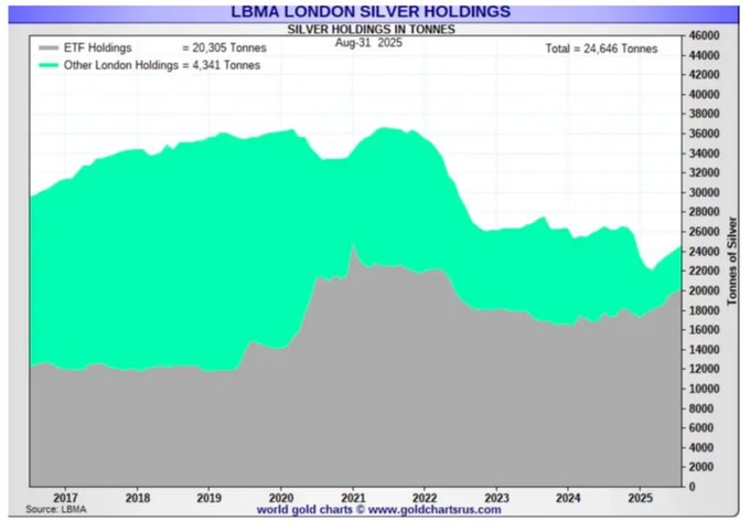 Silver shortage approaching? The green part is the available silver for delivery in London …