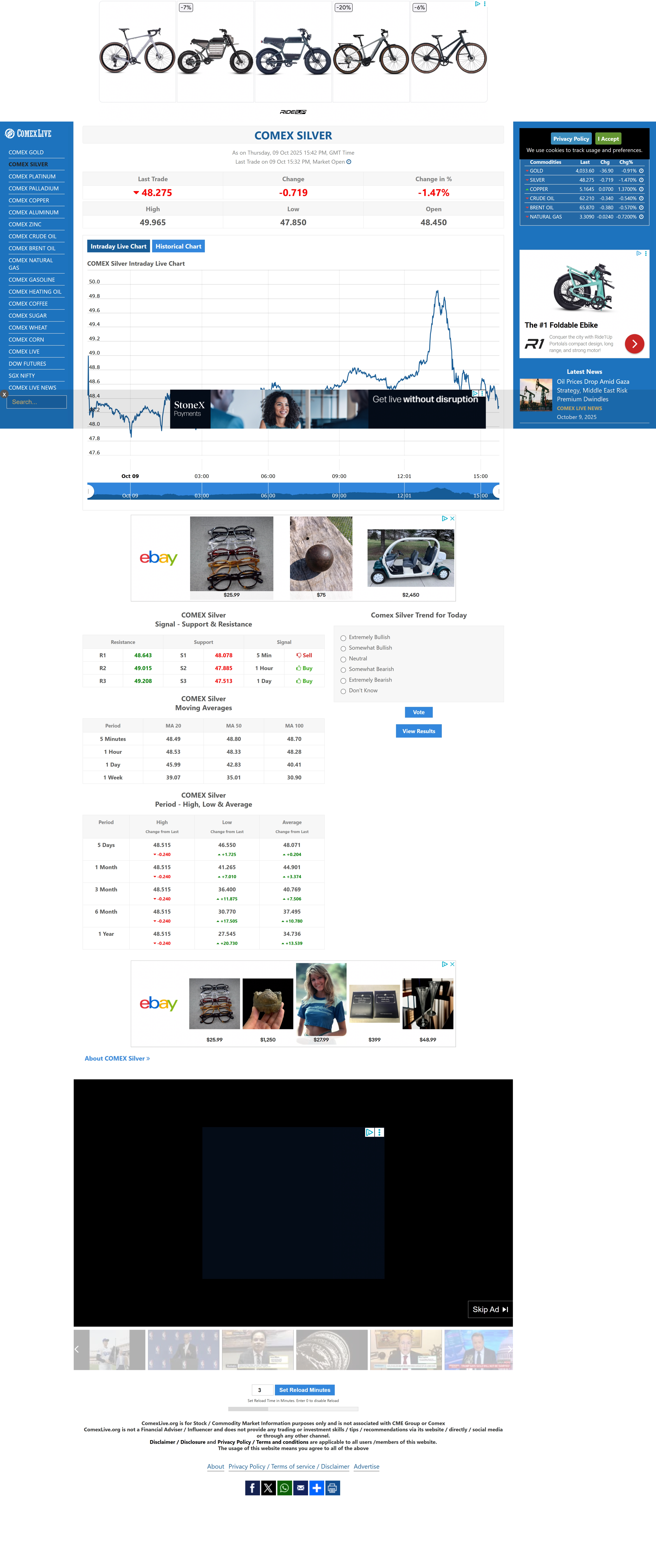 I don't see anything officially over $50, but I do see backwardation, i.e., the spot price is higher than the Comex futures price at this time, by over $1.00 per ounce.