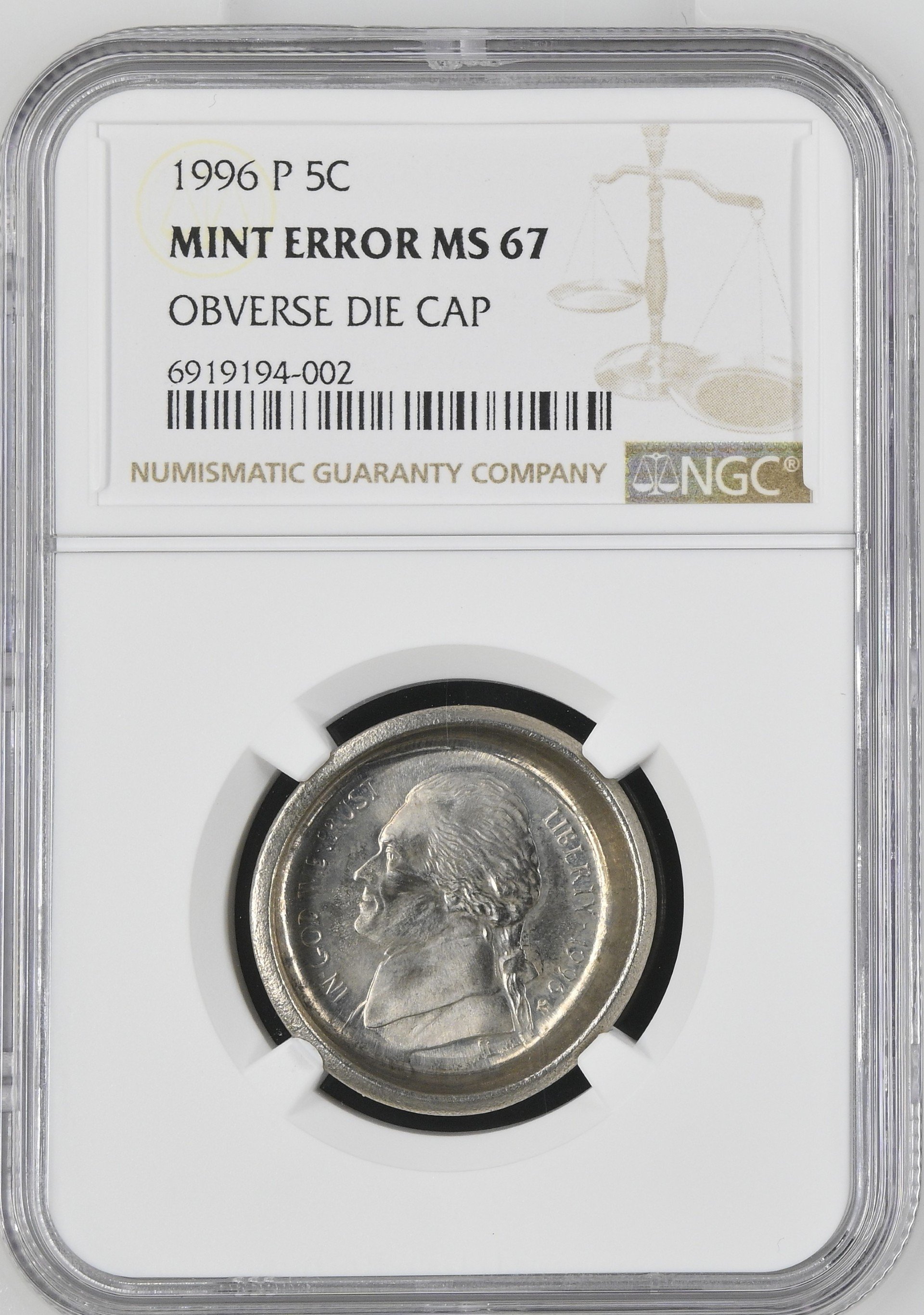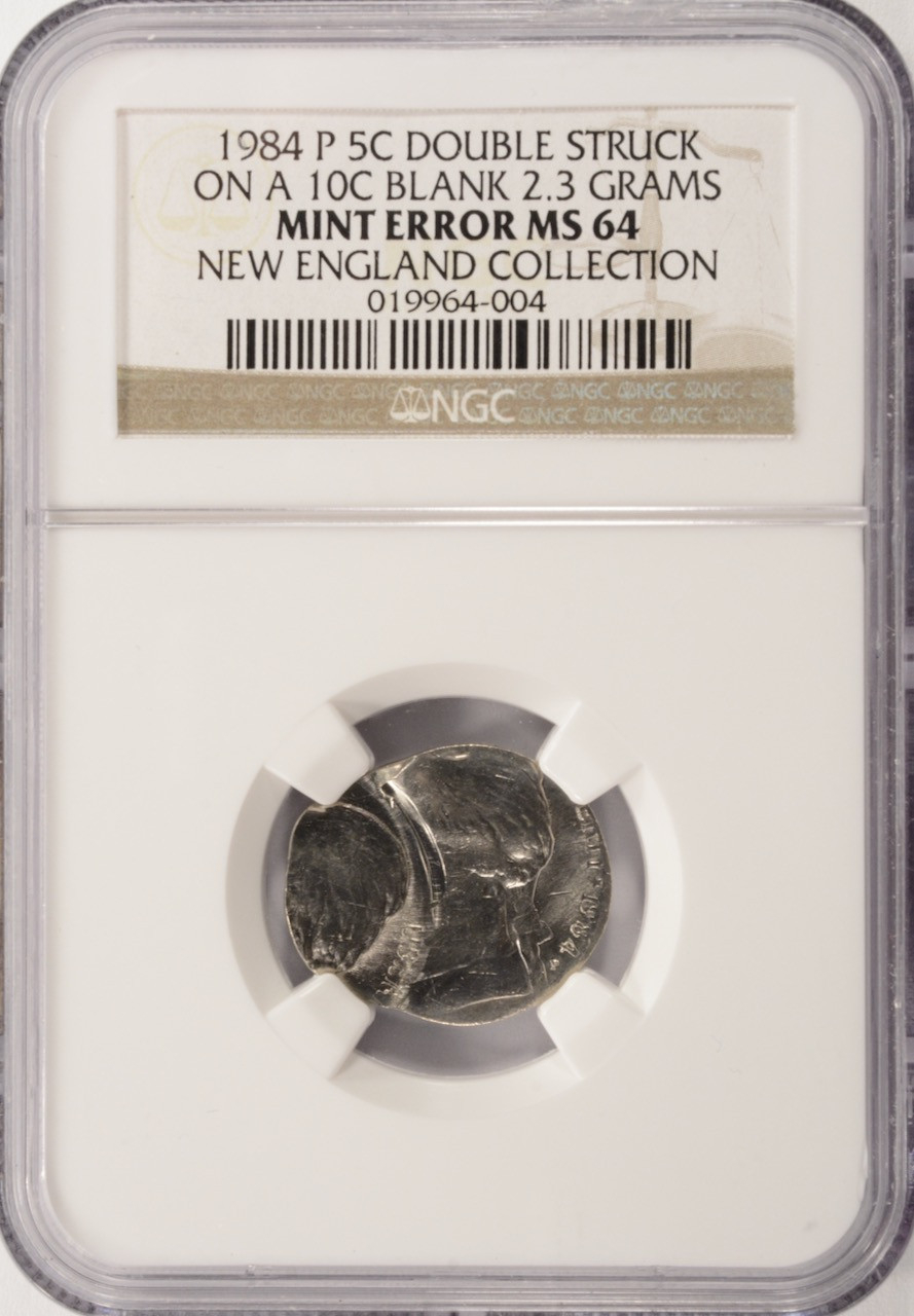 A nice example of the error type, with about 80% of the dime's shape within the design of the nickel. This makes it more obvious and more eye-catching.