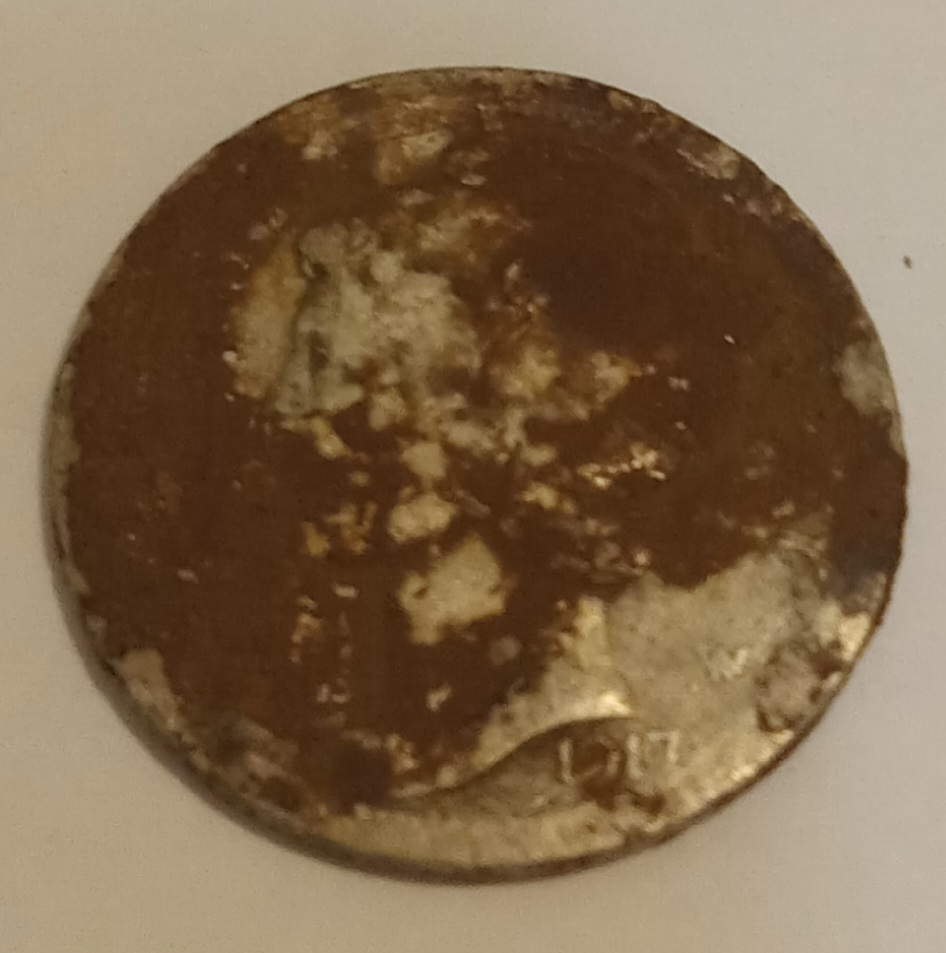The Mercury dime was shallow and I believe it had been missed by me on previous visits to this site due to masking. The signal was 23-45, which is extremely close to where I filter out iron on my Etracs. The obverse of the coin is almost completely covered in rust. I presume that whatever iron object had been masking the coin finally rusted away enough for it to be found.