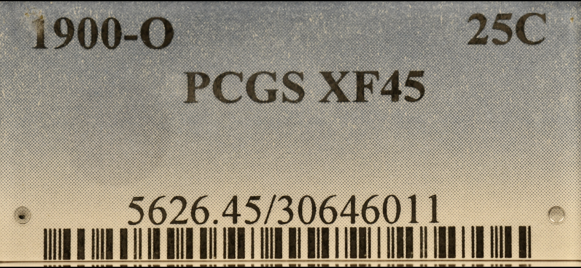 Here is a 1900-O Barber Quarter in PCGS XF45 from JRM Tampa. It is a Type I Obverse and Type II Reverse. I have XF40's but now happy for a 45.