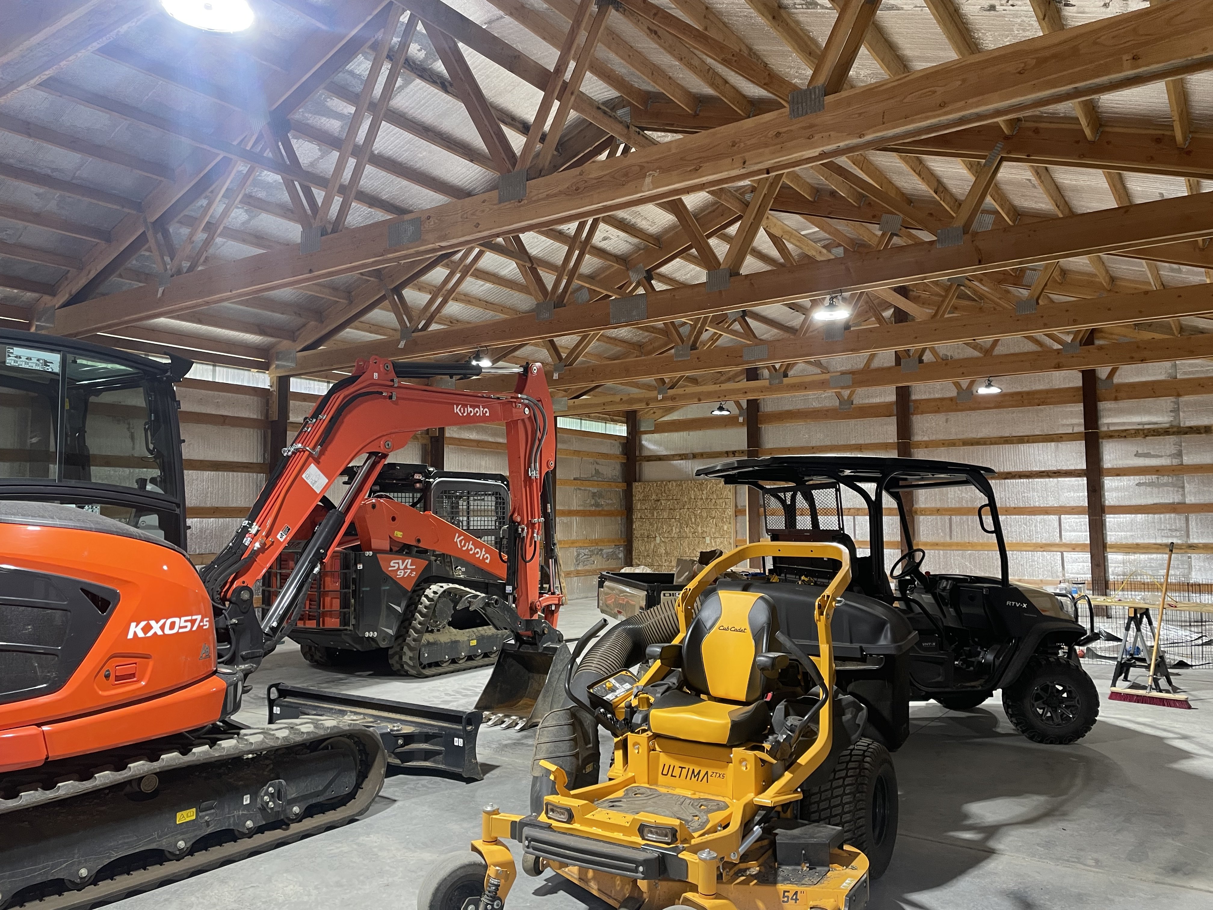 Passed the building inspection, so it’s now complete; passed my first electrical inspection and power is now hooked up. Now need to install all my 20 and 30 amp services to be able to run the equipment and install a big fire stove for building warmth. Overall it looks awesome actually having working lights inside the building now.