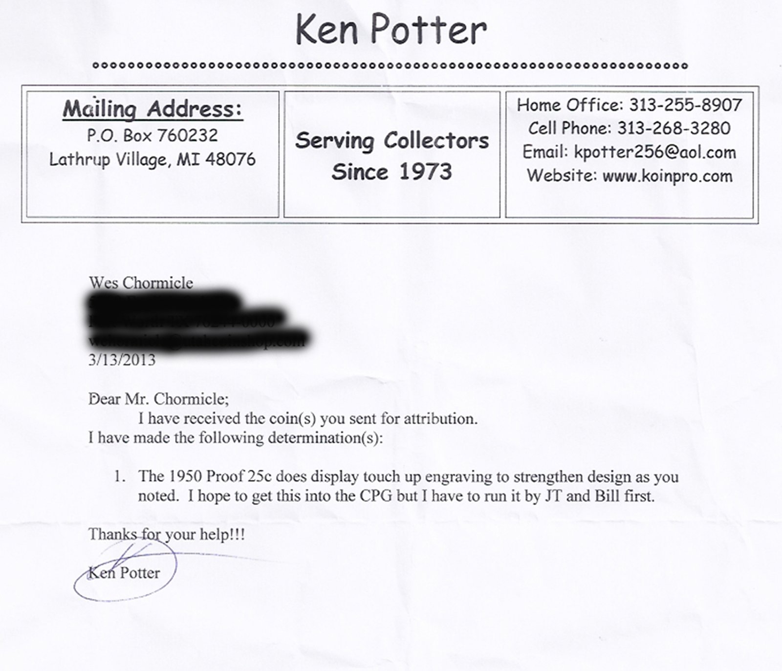 You need to contact JT or someone at the CPG and get credit......I still have the original link and have posted it up above and it shows the date and time. Take the time to contact them now before the book comes out.....jmo.......... You should also contact James Wiles and let him know.