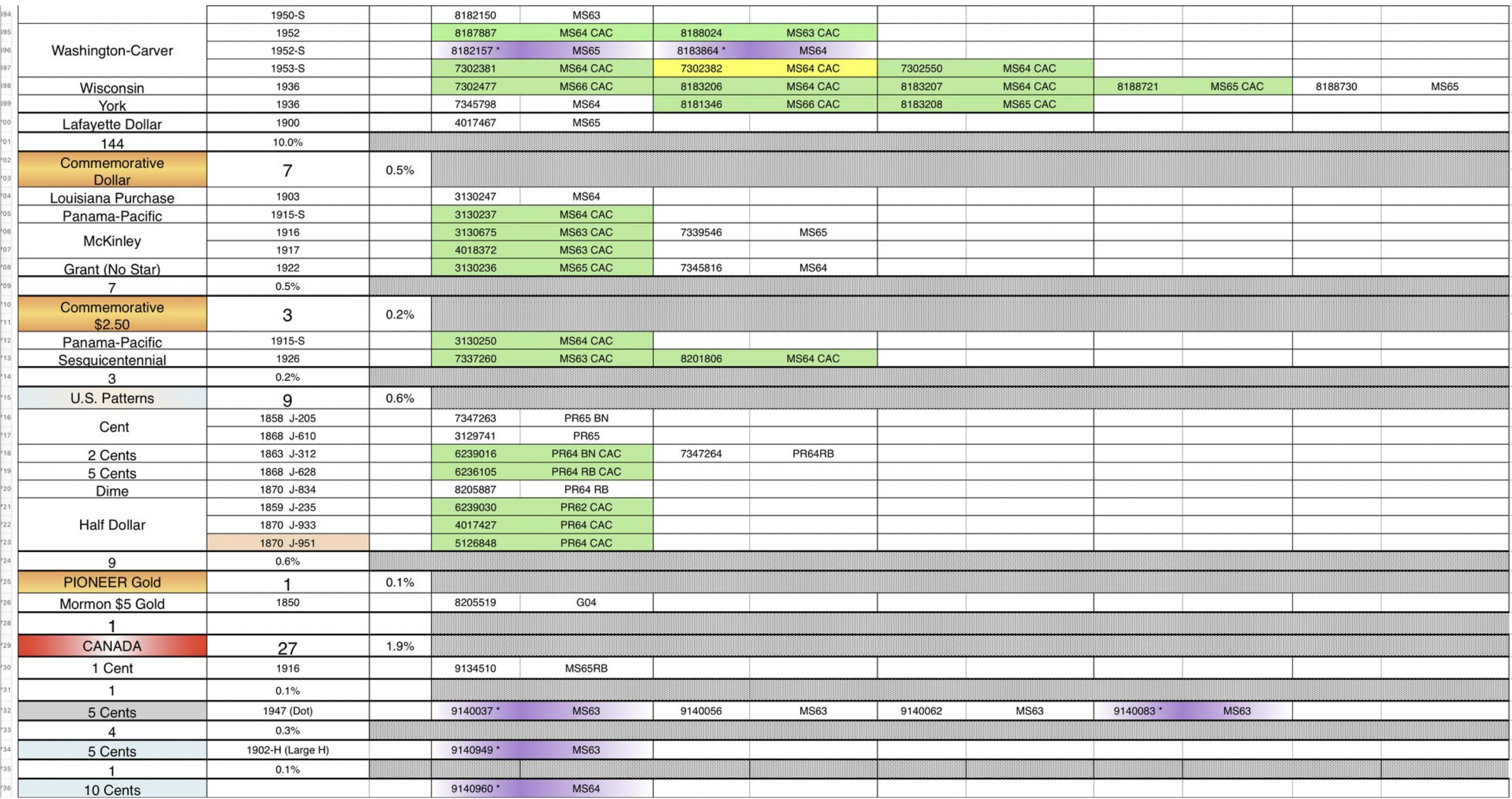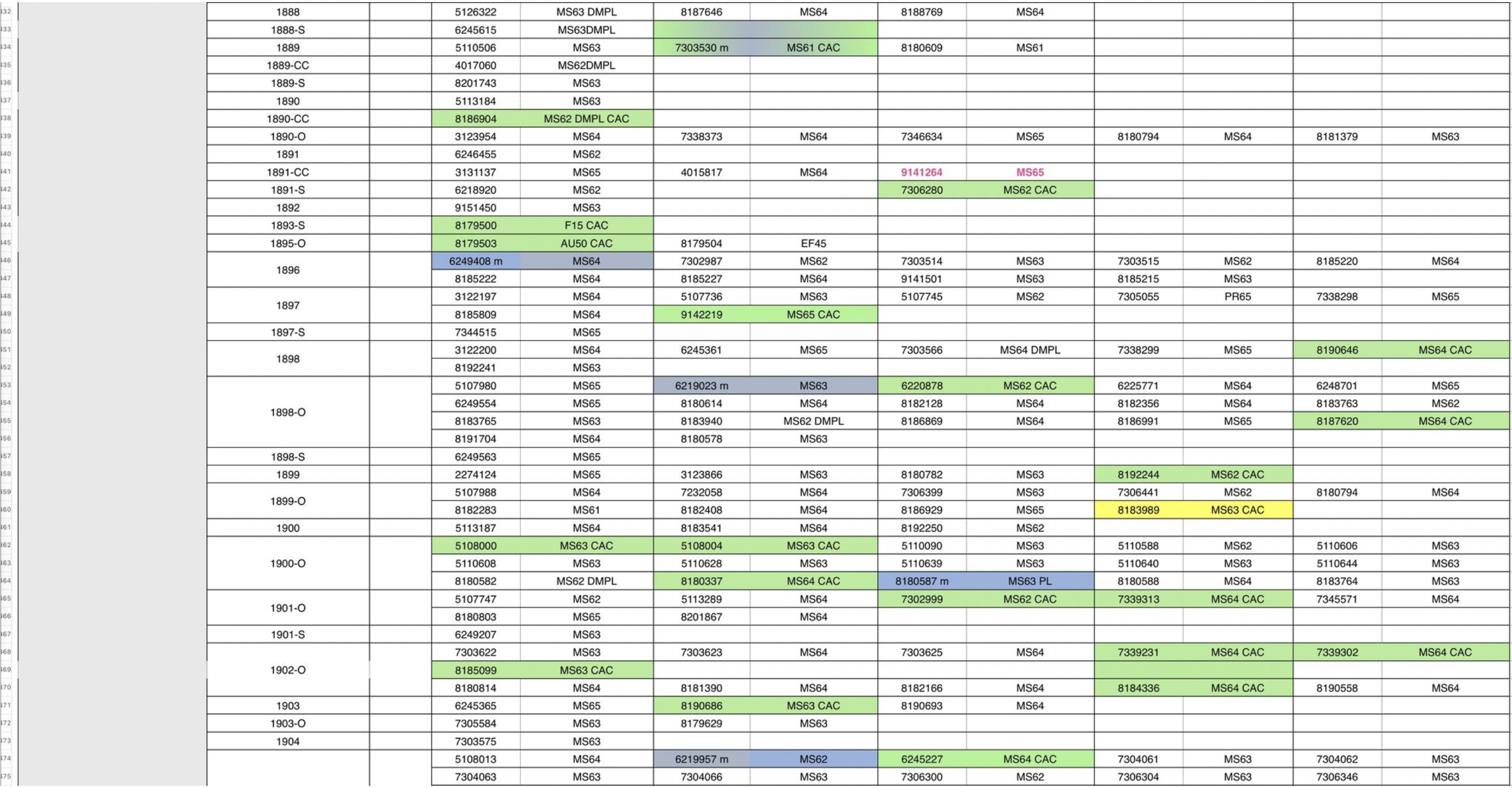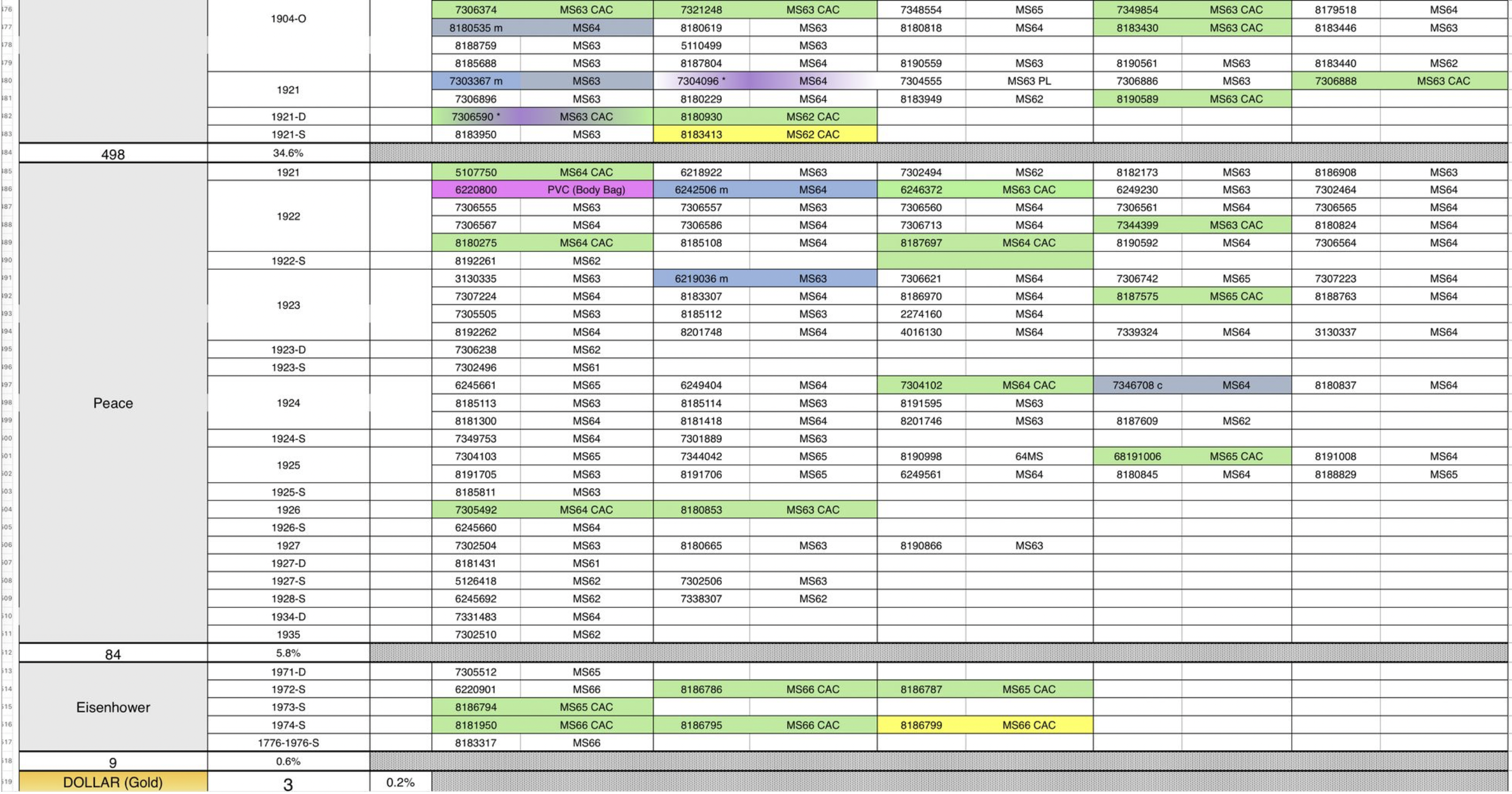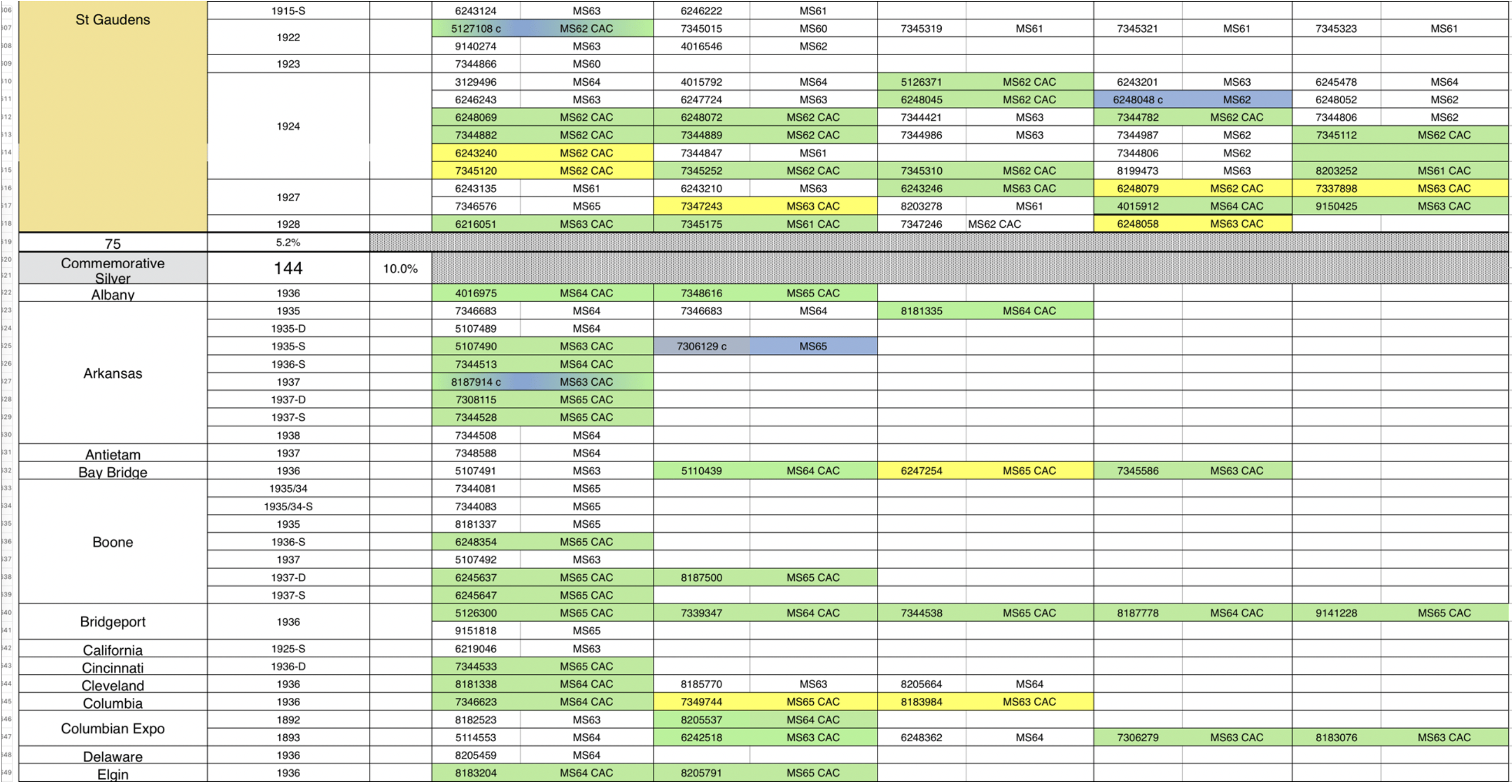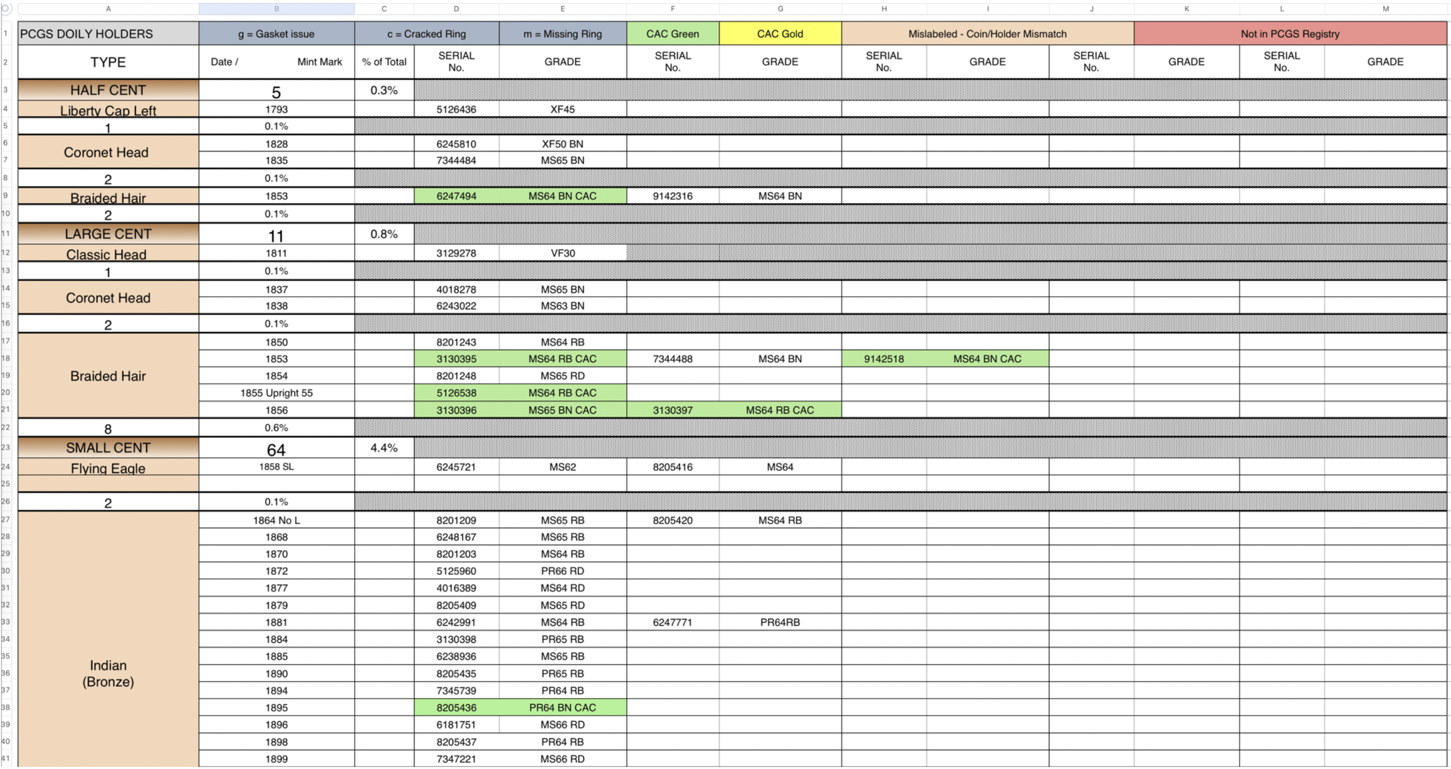 Thanks to TheFinn for creating a spreadsheet and making it far more informative with the addition of grades, CAC status, etc., posted for the 1st time 7-3-18! TheFinn has obviously spent considerable time and effort on this project and it is very much appreciated!