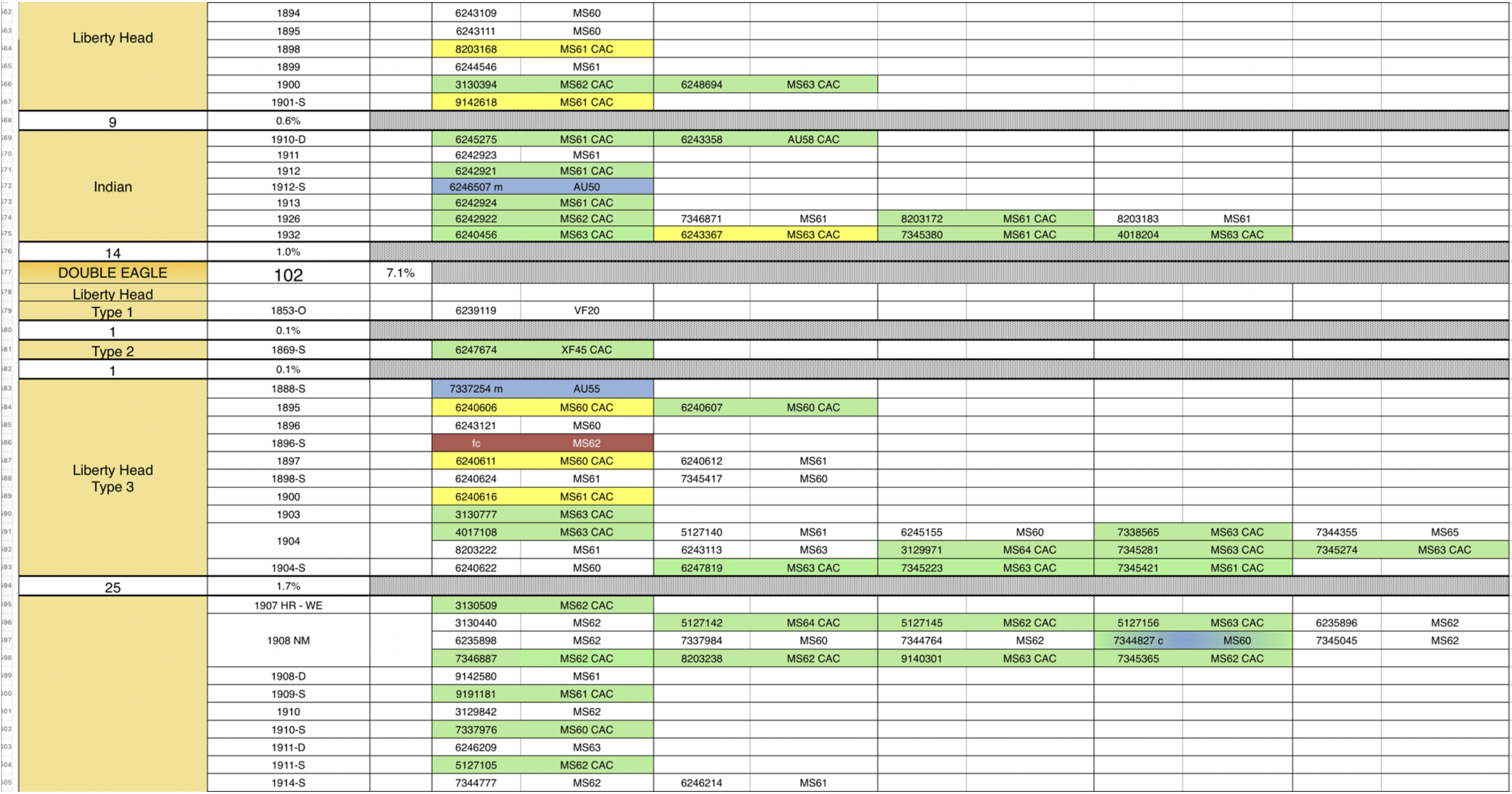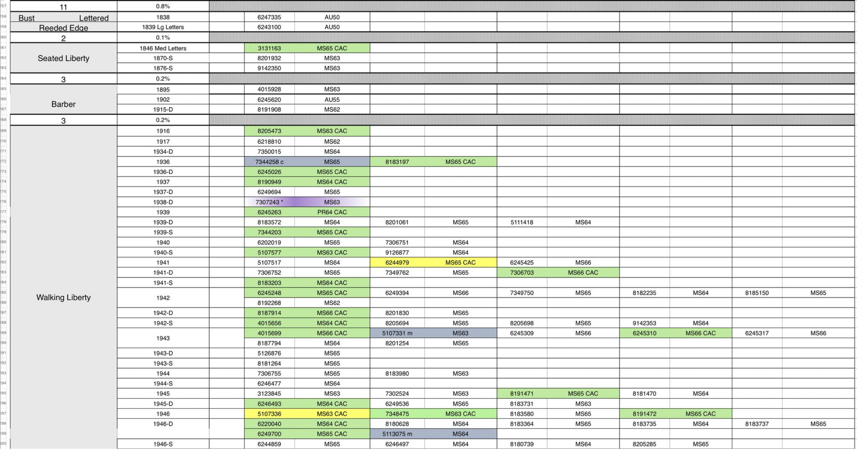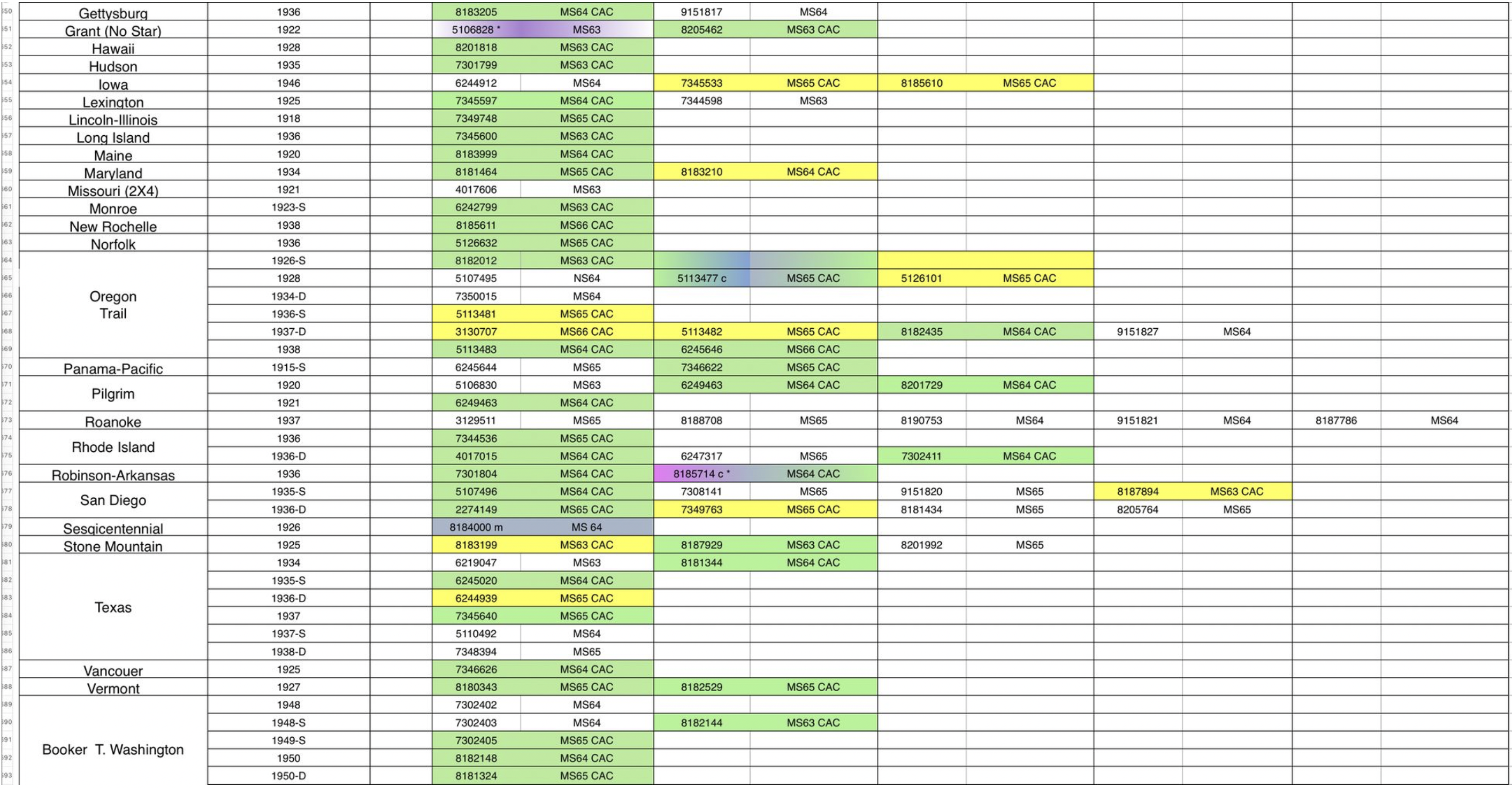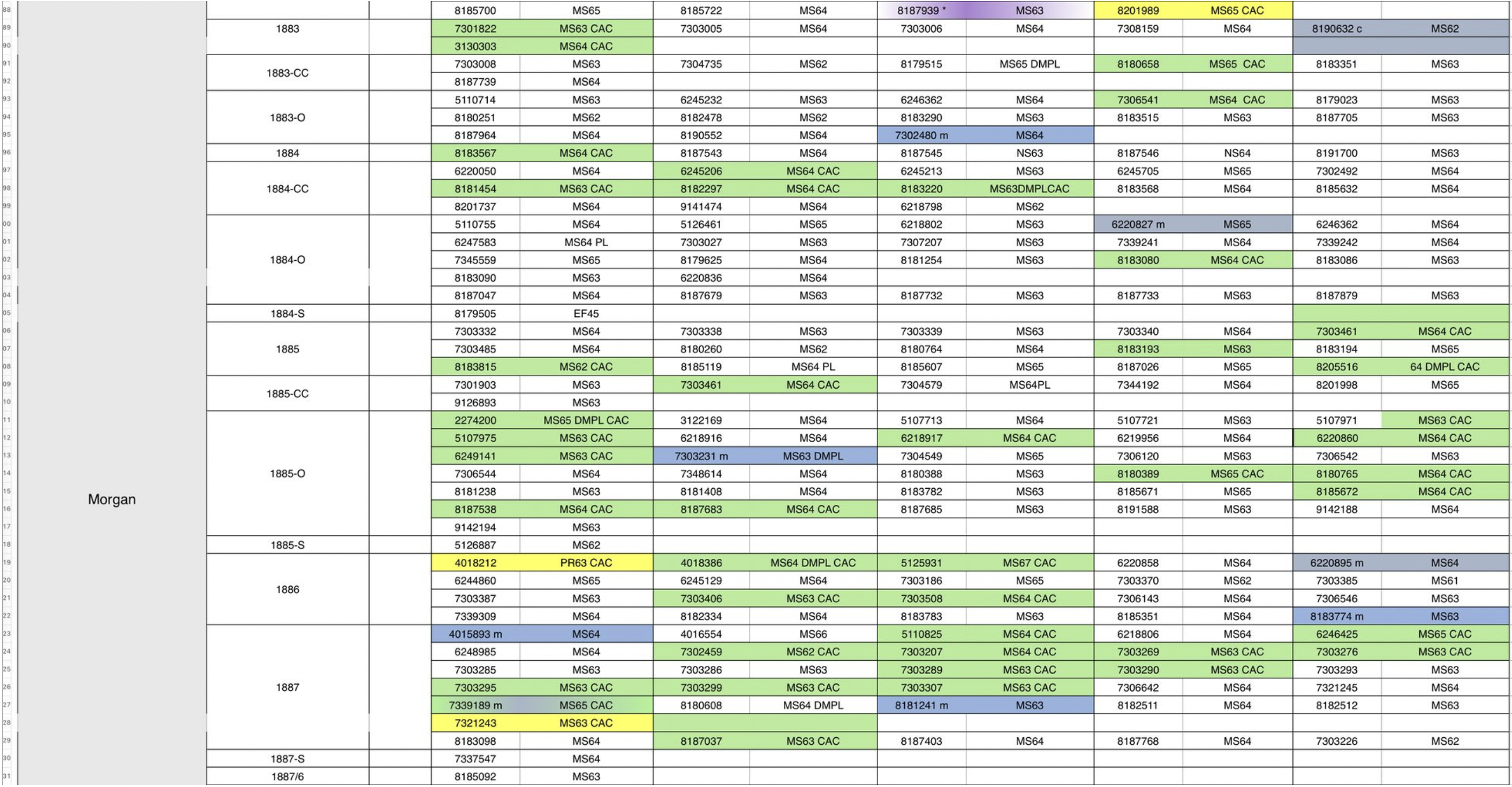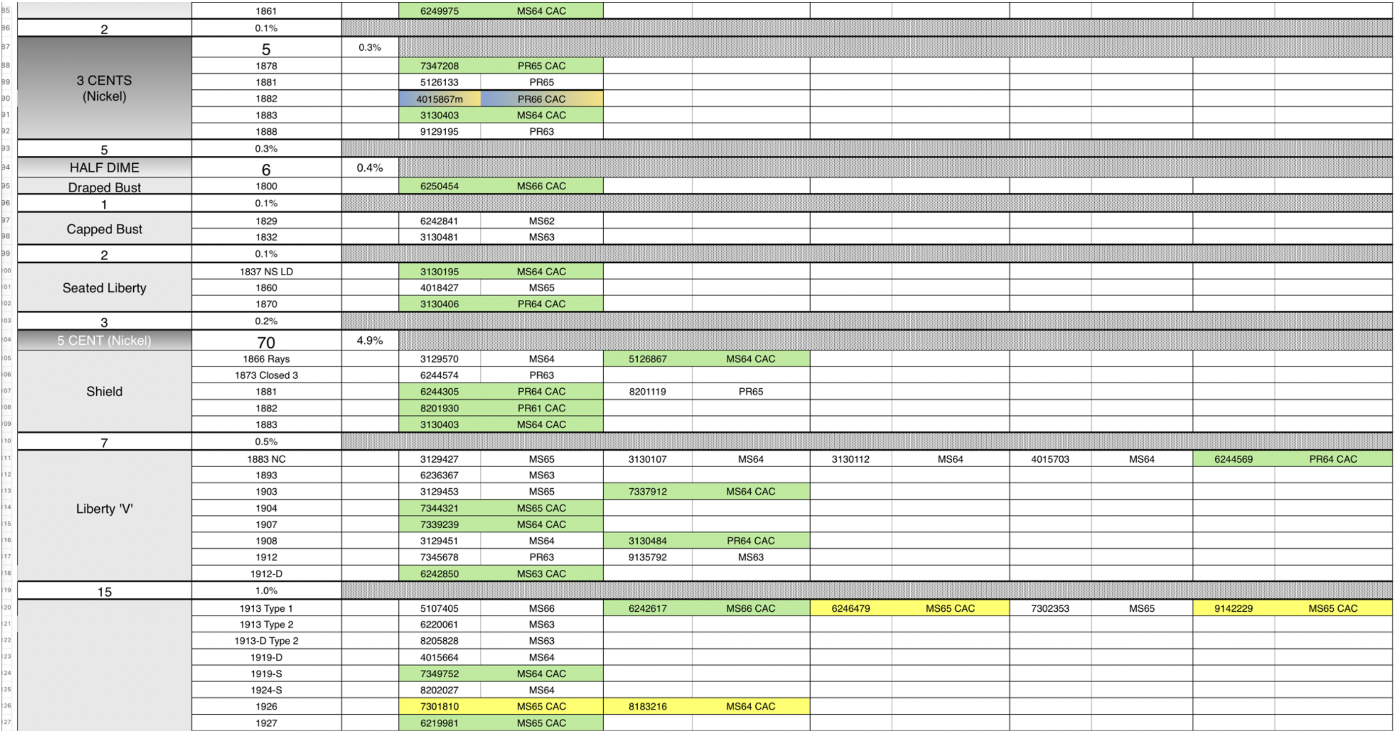 Thanks to TheFinn for creating a spreadsheet and making it far more informative with the addition of grades, CAC status, etc., posted for the 1st time 7-3-18! TheFinn has obviously spent considerable time and effort on this project and it is very much appreciated!