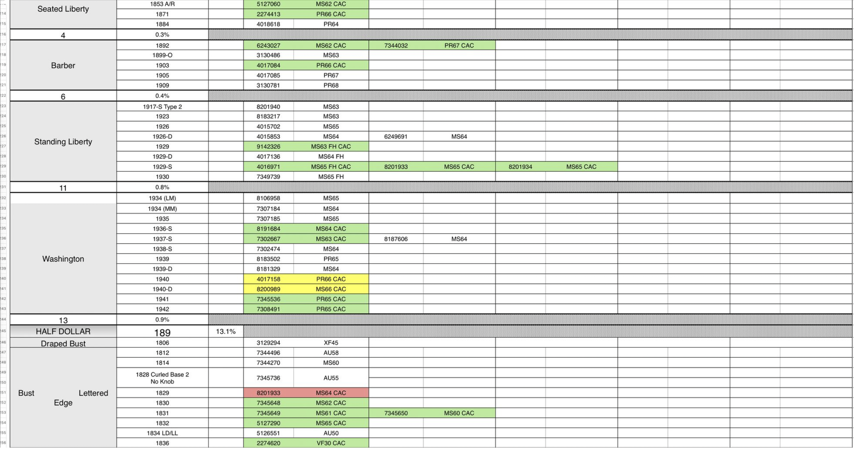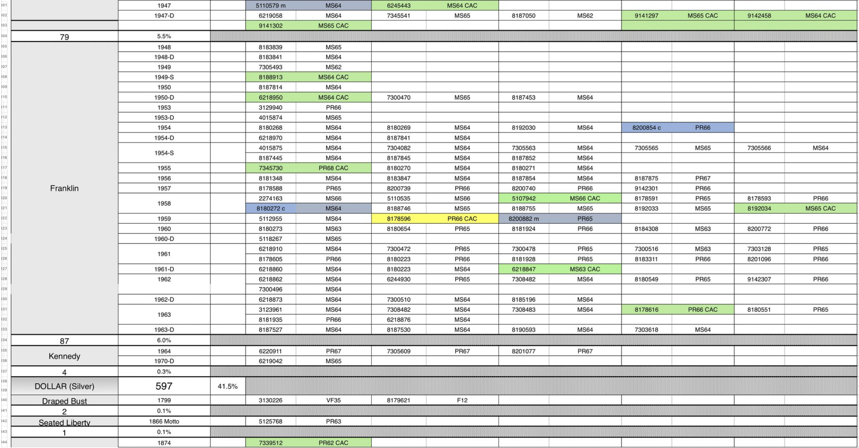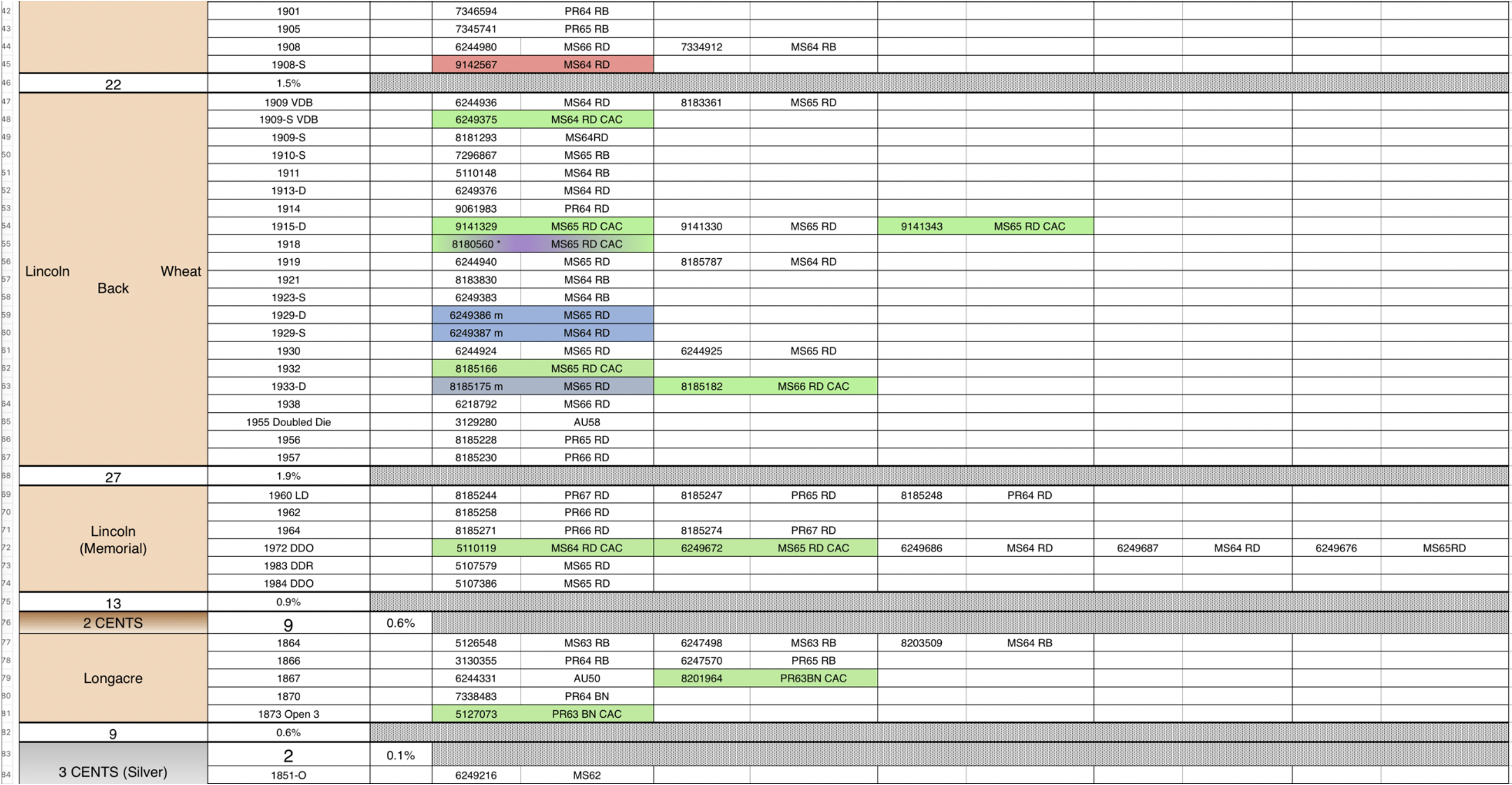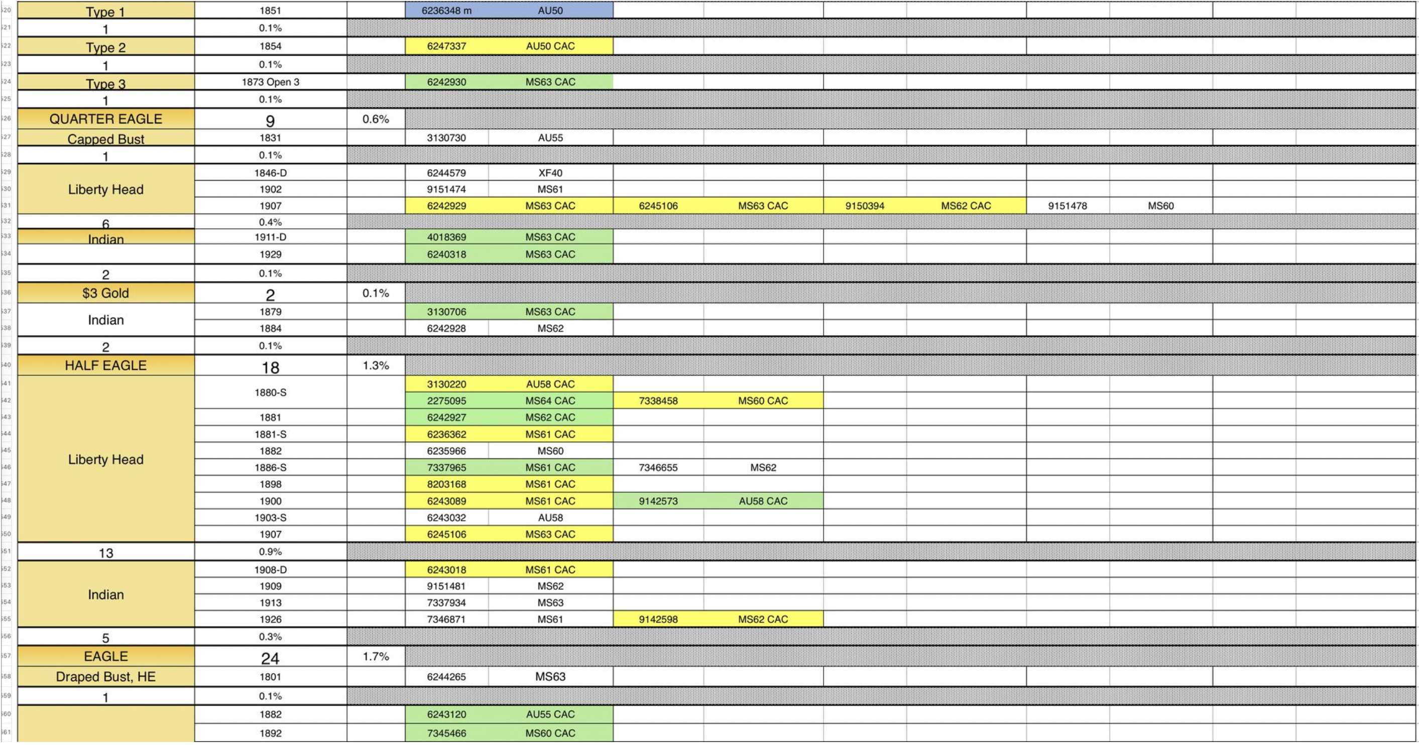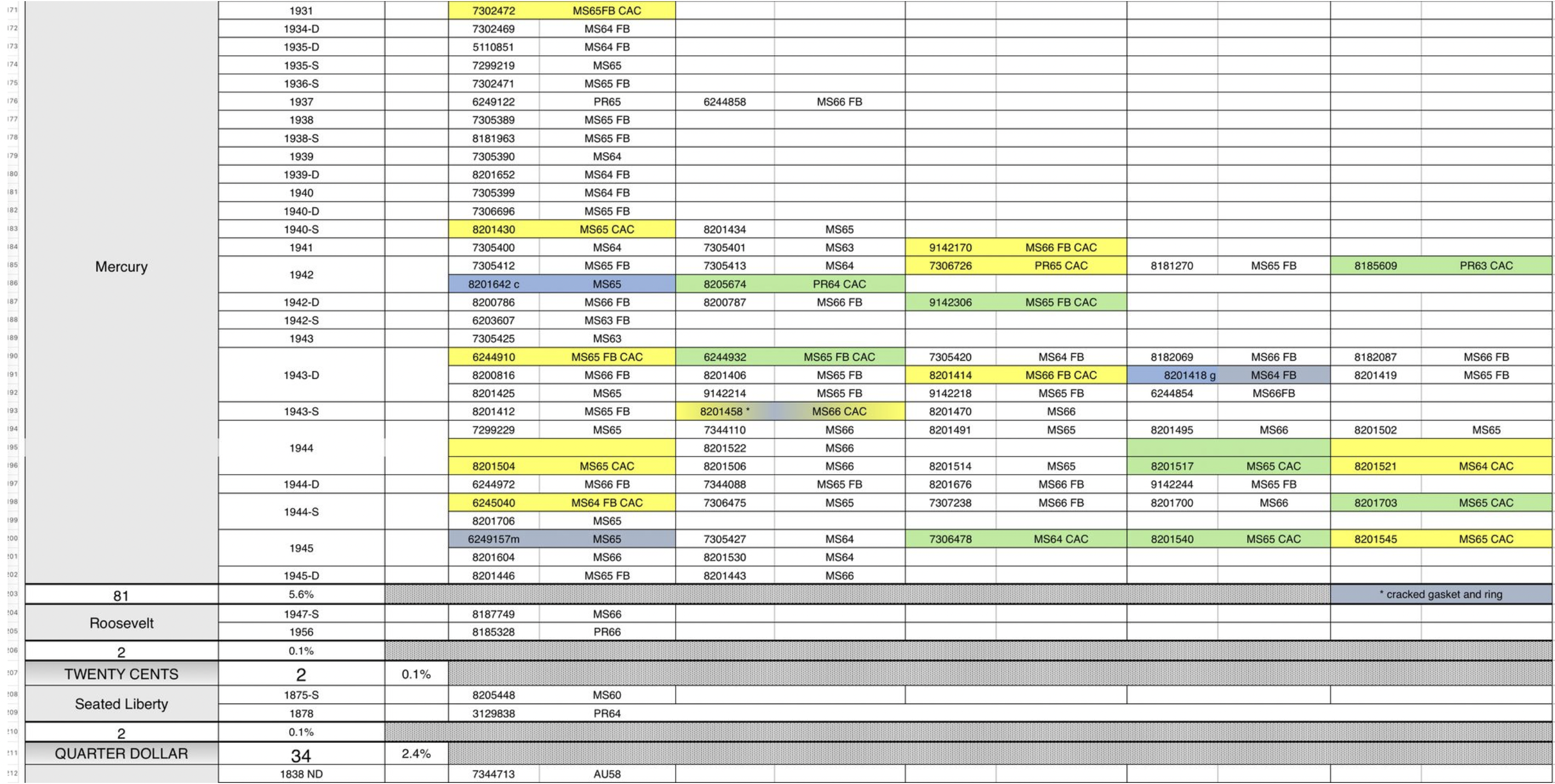 Thanks to TheFinn for creating a spreadsheet and making it far more informative with the addition of grades, CAC status, etc., posted for the 1st time 7-3-18! TheFinn has obviously spent considerable time and effort on this project and it is very much appreciated!