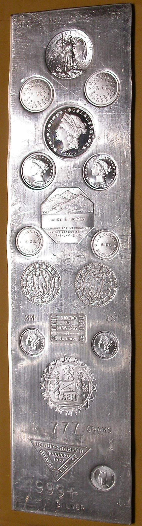 Note that the longer one started out as a vintage Handy & Harman slab (with their mark on it).