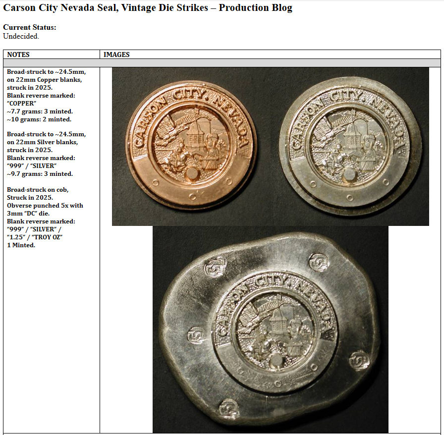 Dan struck no less than 340 items from the cancelled 1884 CC Morgan die pair 37 dies, which were over 130 years old and rusted. I'm sure that these dies are in better shape (especially the dies used for the gold 'cent" strikes which were far from a full production run).