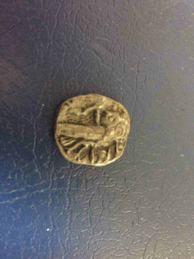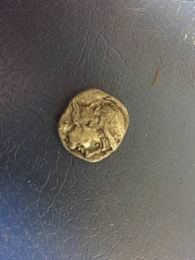 Sadly, what you have here is not a real coin. It is a fairly crude replica of an Athenian "owl" tetradrachm. This particular replica, with what I call the "two-planks-of-wood wings" and the "Edvard Munch eyes" on the owl, is one that crops up quite frequently on the internet forums. It was apparently mass-produced and given away by Reader's Digest or some similar company as part of a promotion for a book. They often seem to come in the same kind of cheap airtight case. There are numerous examples posted on the FORVM fake database; Here's one.