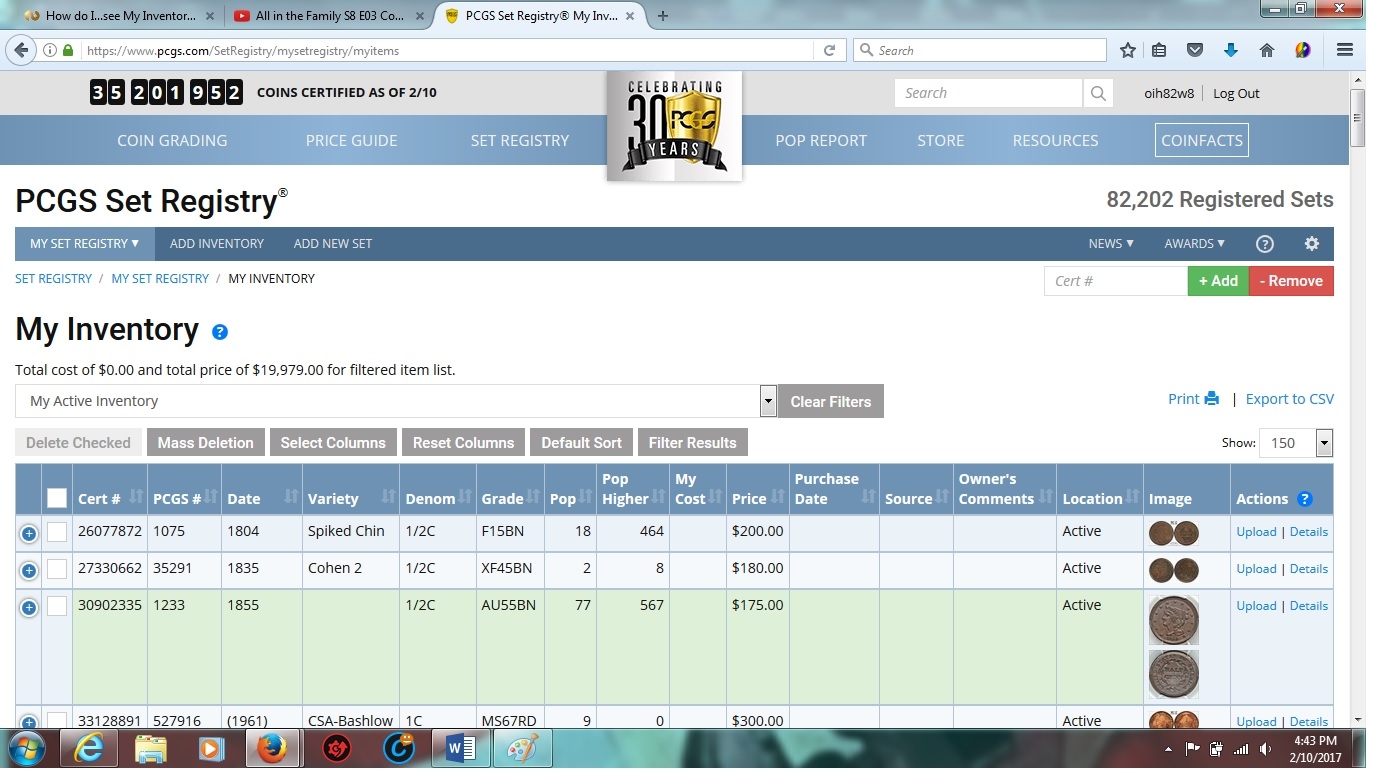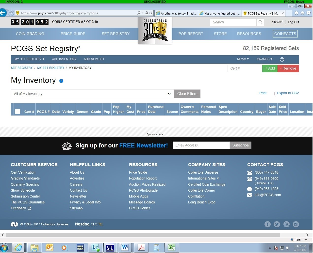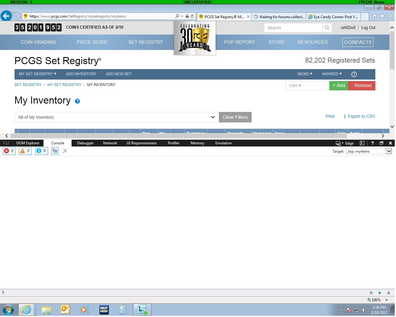 This new program is going against my grain. How do I see My Inventory? I can work around the registry and showcases ok, but my coins do not show up in My Inventory. Here is a screen capture.