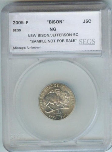 Similar SEGS slabs are listed in the Schwager reference on Sample Slabs for the 2004 Keel Boat and Peace Nickels. Similar slabs for the 2006 new design are also listed. The reference mentions that no 2005 SEGS nickel samples are known, but that does not seem to be the case now. All of these samples are valued at $10-$12 each in the Schwager reference and I would guess the value of this one to be in the same ballpark... though if it were listed on eBay and a couple collectors had to have it, a price over $20 would not surprise me at all.