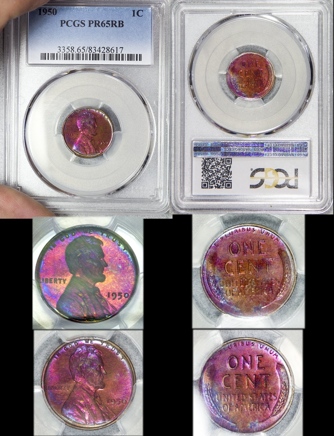 Who likes purple, rose, gold and green on their 1950 proof Lincoln Cents? Picture attached
