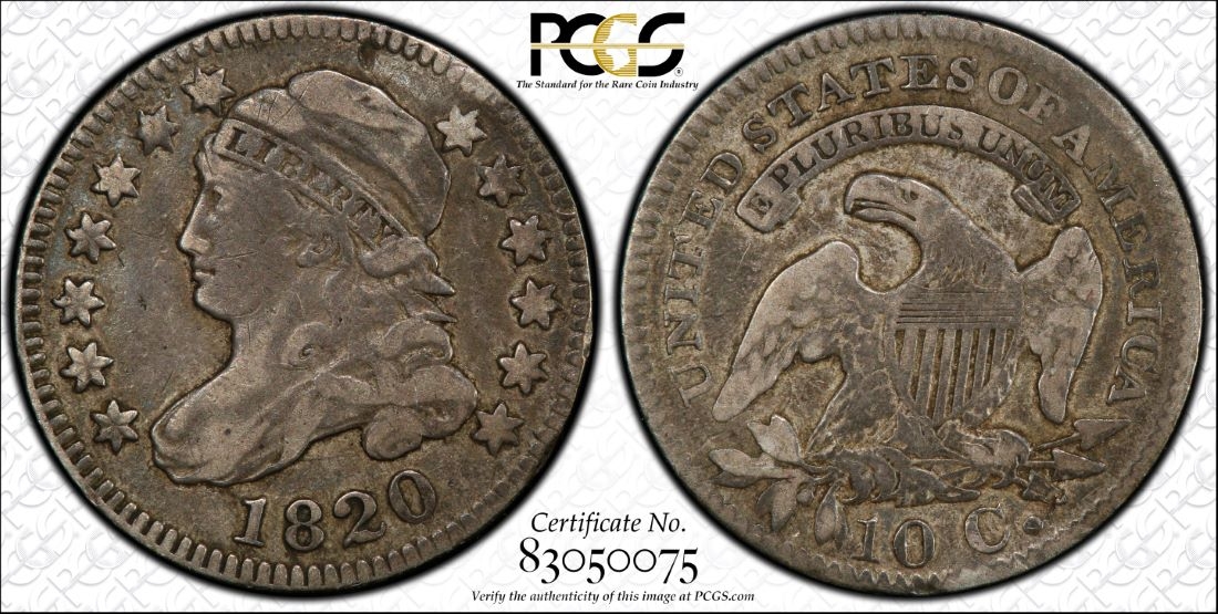 The 1820 JR5 which is a R4. This coin is PCGS detail VF due to small rim problem @ 12 O'Clock on obverse.