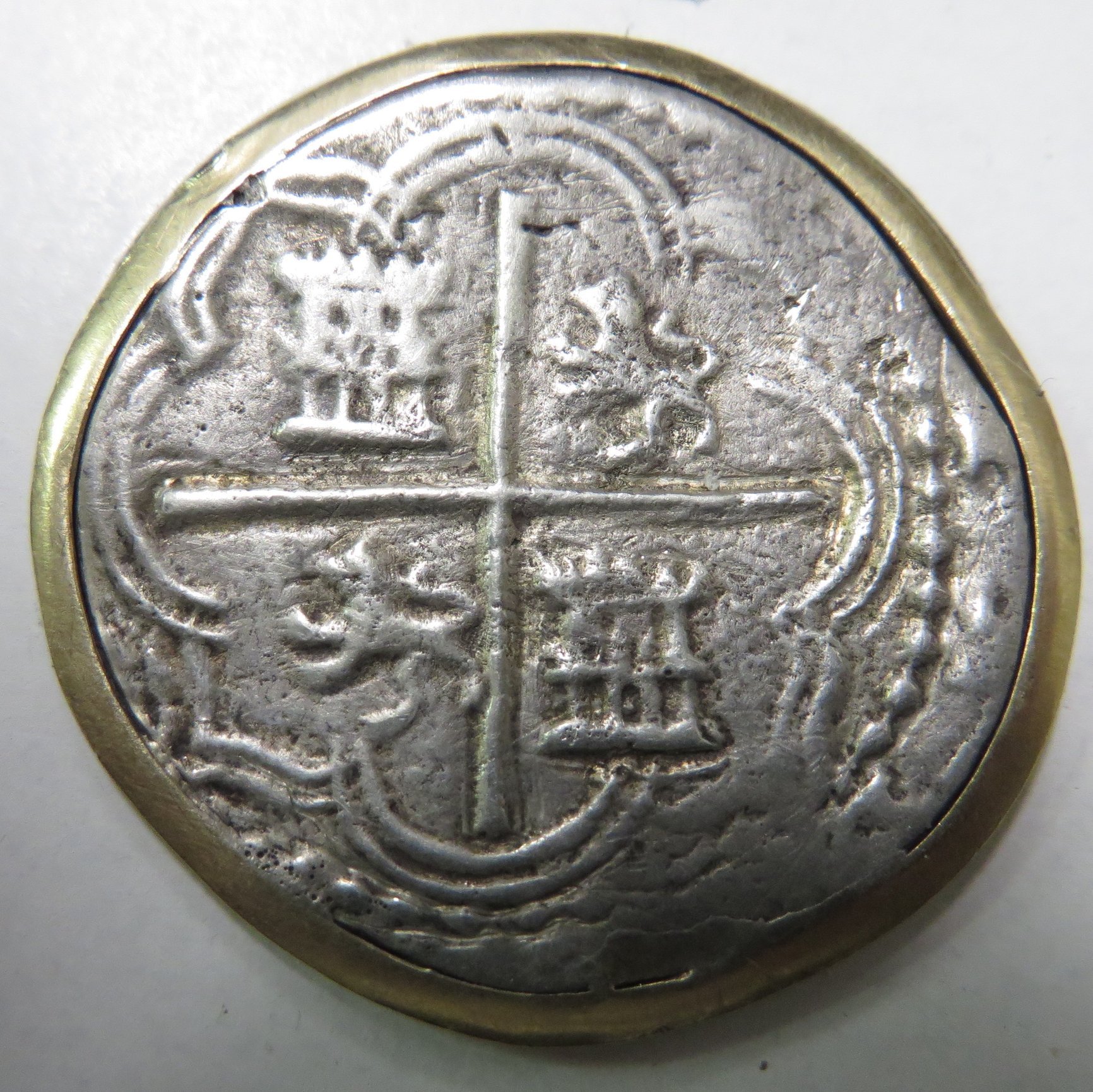 It is, unfortunately, a poorly cast "tourist copy" replica of a Spanish gold 8 escudos, or "pirate doubloon".
