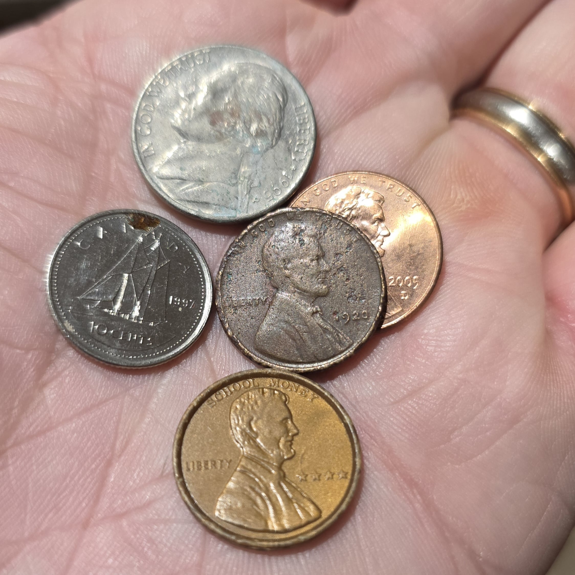 Found a 1942 S wheat cent and a 2005 Canadian cent today in the Coinstar machine at Safeway.