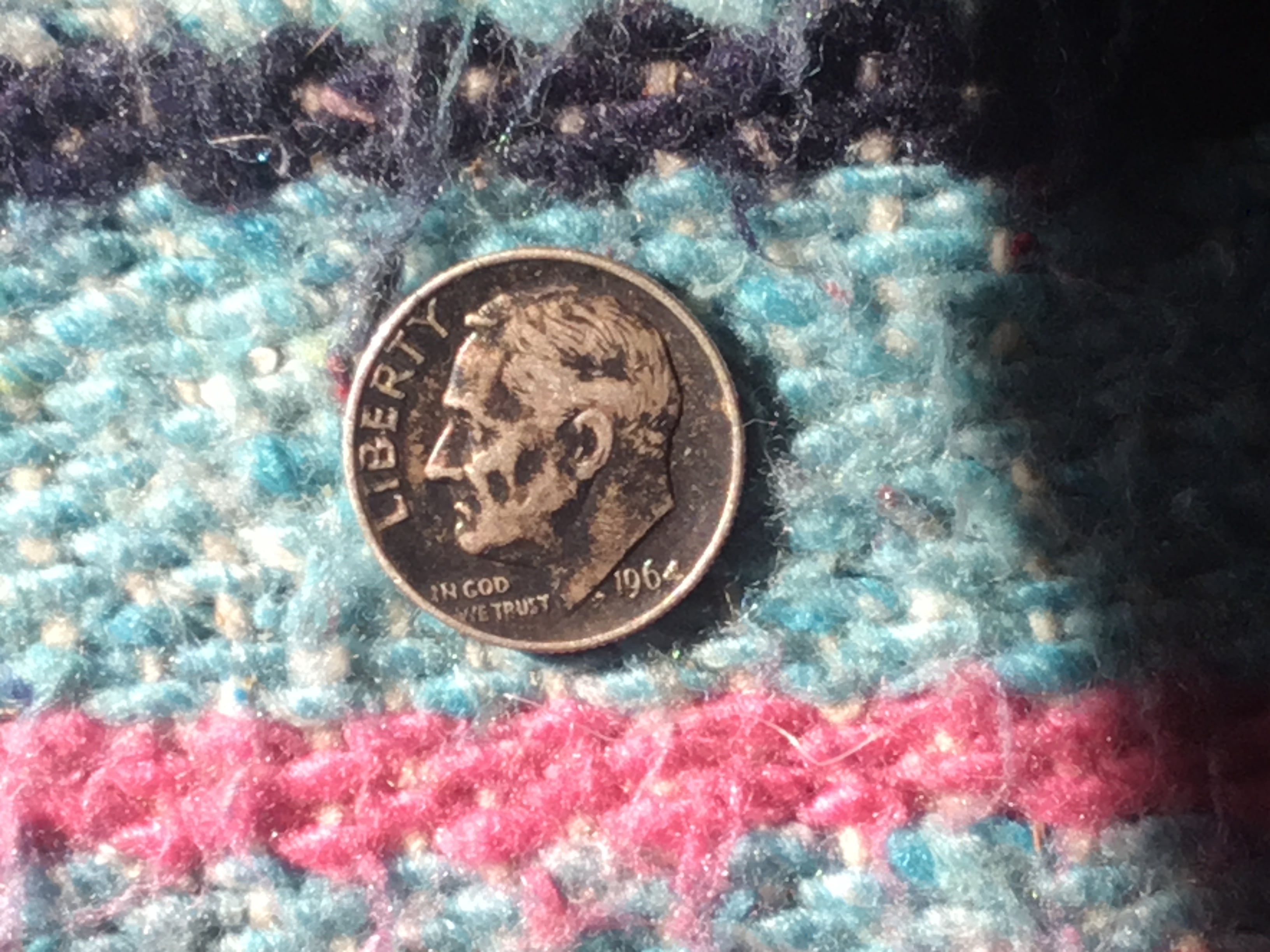 Almost missed this one at the Wal-Mart coin star. At first, I didn't see anything. Then I saw a lone dark coin in the back of the reject slot. I thought that it was a cent. I pulled it out, and saw that it was a dime that appeared to be silver. I wasn't sure though, because I couldn't make out the date. When I got home, I checked it out with my magnifier, and verified that it was a 1964 silver dime.