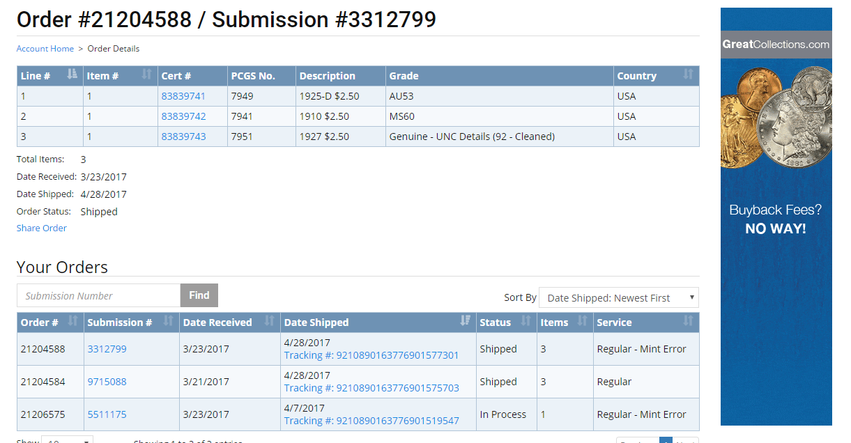 My submissions have dropped off dramatically over the past couple of years from hundreds of coins to basically 8.