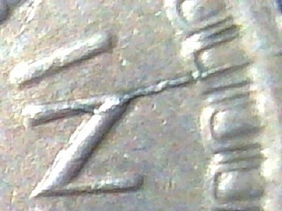 Close up of the die crack section of the coin