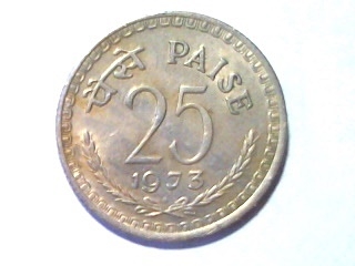 this 1973 India 25 paise that has a die crack running into the N in India