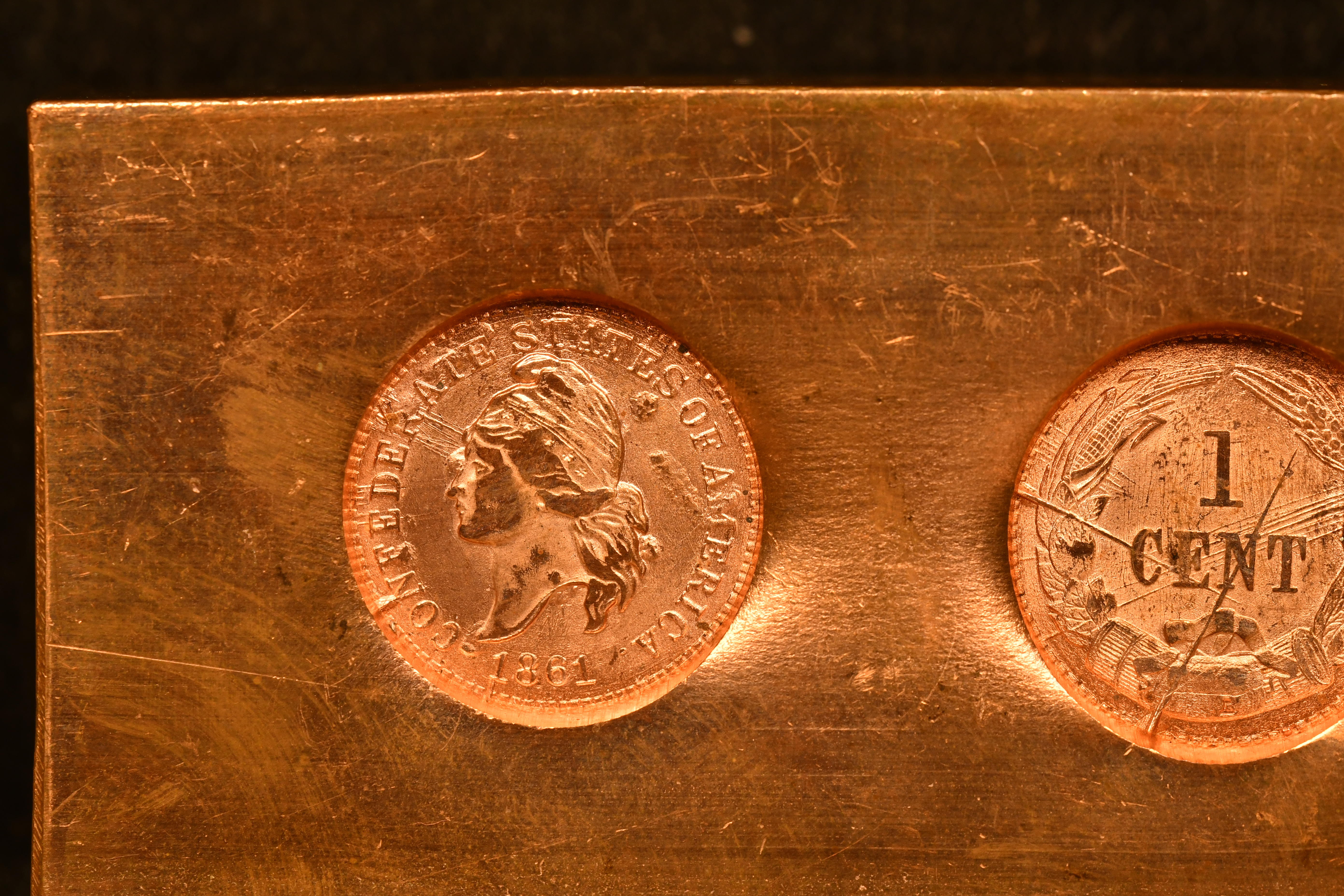 These copper bars are pretty neat items and they do a great job of presenting the design of the Confederate Cent... at least as good as you could show it from the transfer dies that were made from the rusted and damaged original.