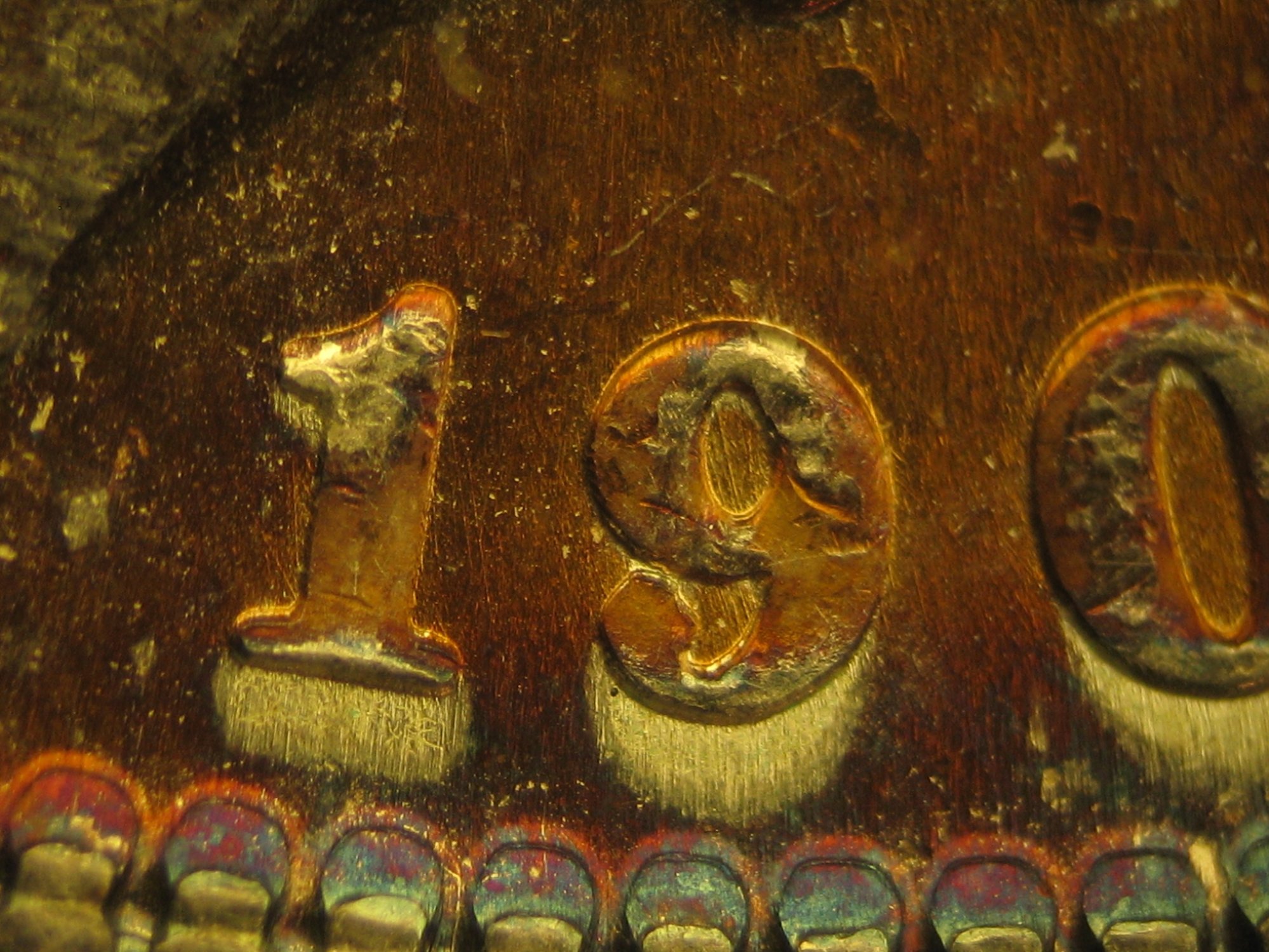Excellent discussion.... I have taken courses in metallurgy (long ago career in a shipyard)... I notice the pull away effect is manifested between devices in close proximity (i.e. edge/denticles-numbers or letters). This area experiences unique stresses during coining with metal flowing up and into the devices and stressing the small area between. This will affect the molecular structure and as such affect the chemical resistance to tarnish. Certainly the metal alloy (or lack thereof) can also contribute to this effect. @Insider2 ...your dealer friend has an interesting idea, however, the air flow idea makes no sense, especially if you notice that the effect is obvious around the coin, which would indicate air flow from the center out...not possible. So draft goes down the tubes. ;) Cheers, RickO