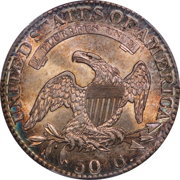Is it a function of strike pressure? Pull-away toning is not uncommon on Morgans but kind of rare for screw press coins. I looked through hundreds of bust half examples and came up with only a few. (Below, an 1822 O.108a.)
