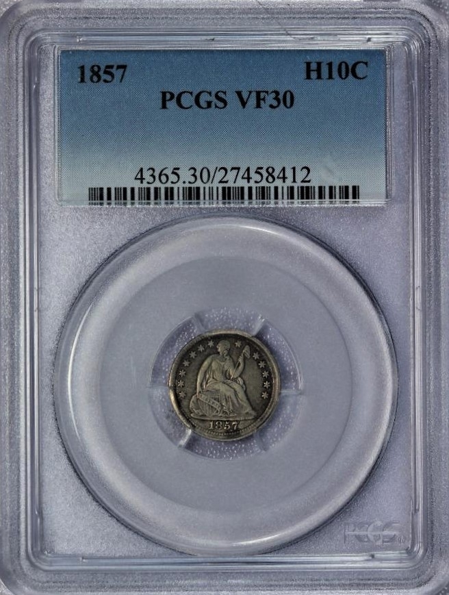 Here is an 1857 Half Dime with almost 180 degree rotation...