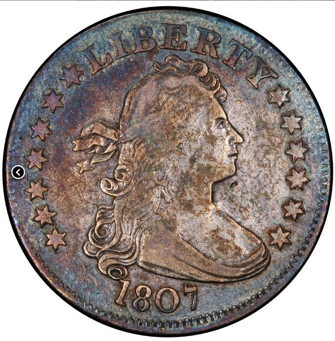 Manniegray also had 53 to 55 for the 1820, but for the 1807 VF20 to VF30. A number of people thought the 1807 should be graded a little higher, so maybe it should really be a VF25/30 coin. It has overall attractive color to it.