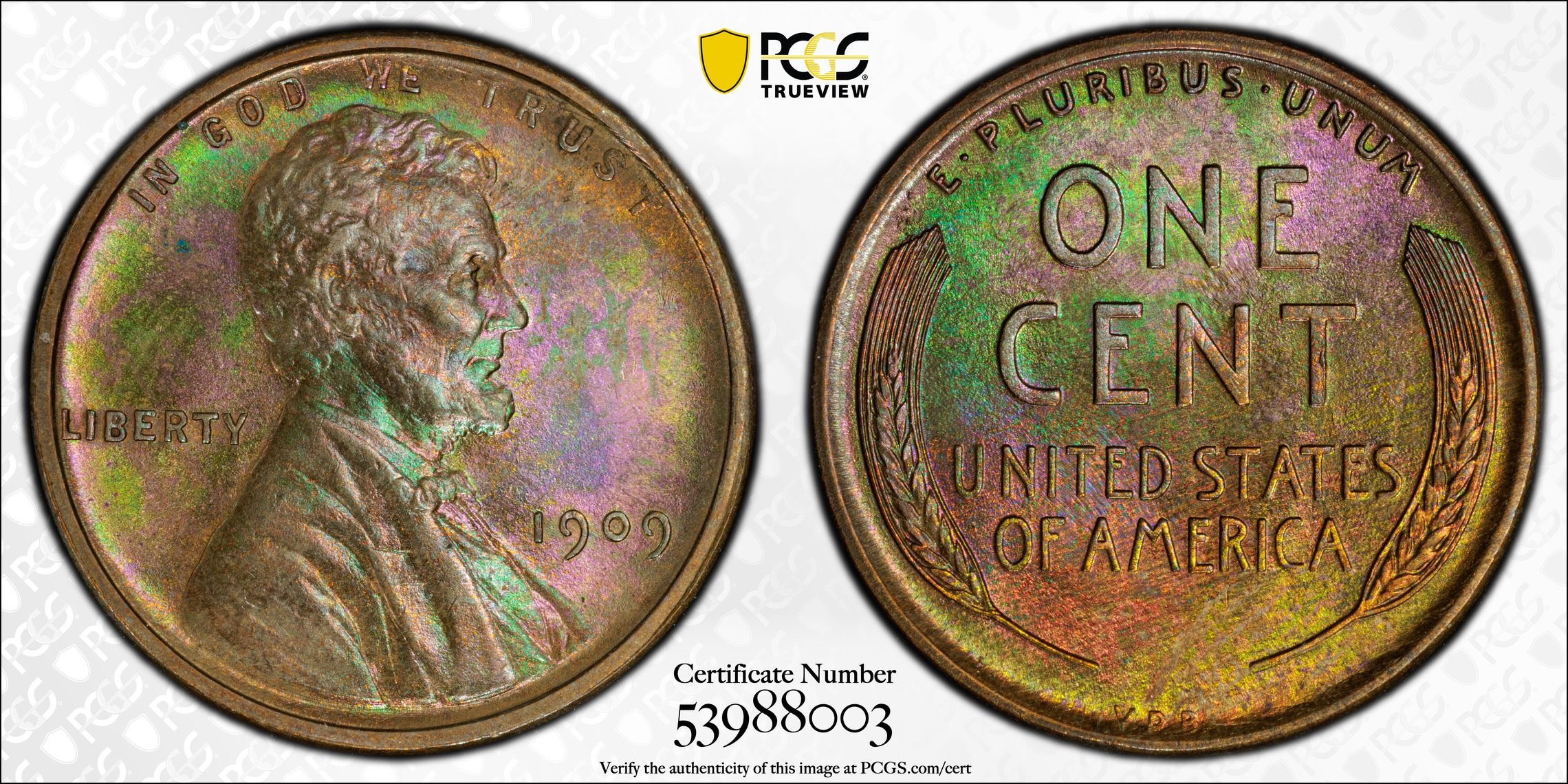 • Fresh back from PCGS. The true view does not do this 09 VDB justice …. The color story on the reverse is just incredible in hand.
