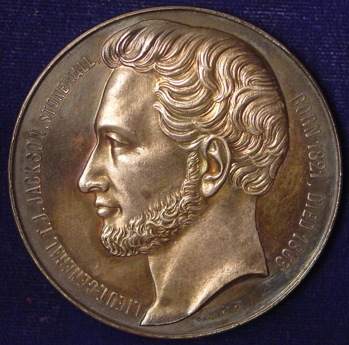 Here is a Thomas "Stonewall" Jackson medal. I have read that these pieces were struck in Paris and that the intent was to hand them out to Stonewall's men during the war. The South lost before that could happen, and they ended up in a warehouse until the 1890s. I believe that the Daughters of the Confederacy were involued in distributing them, but my mind is fuzzy on that detail.